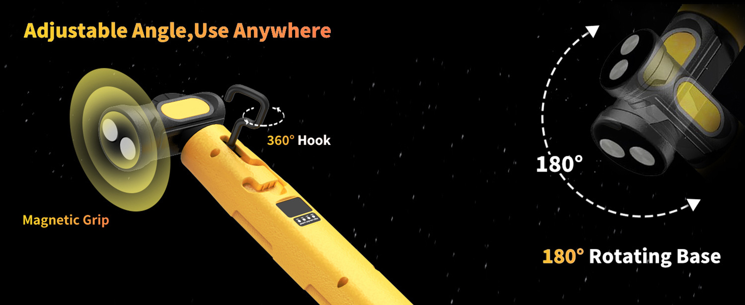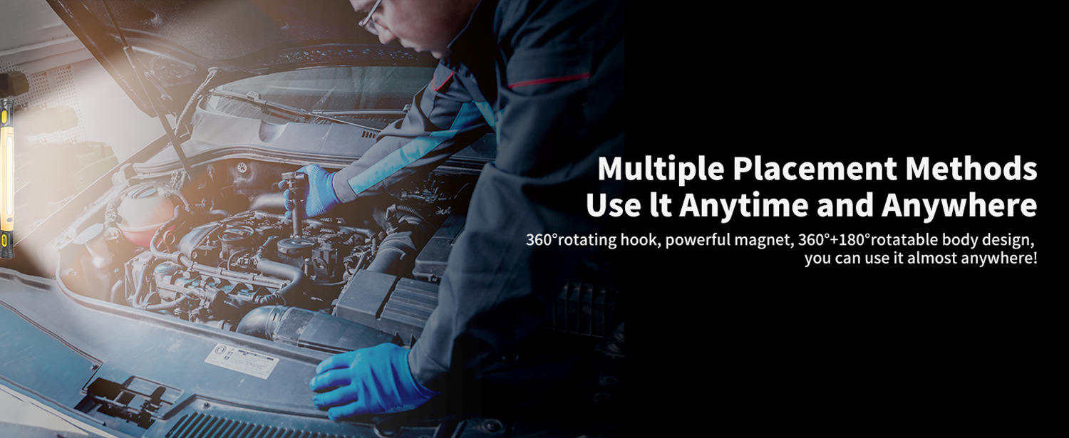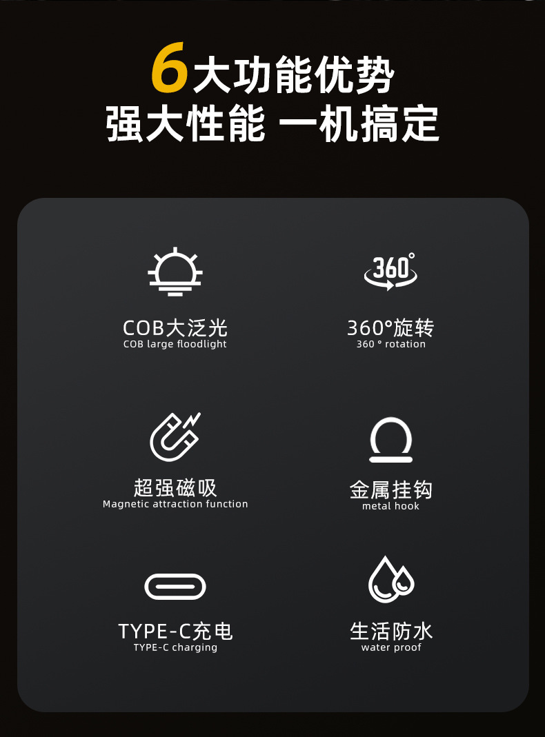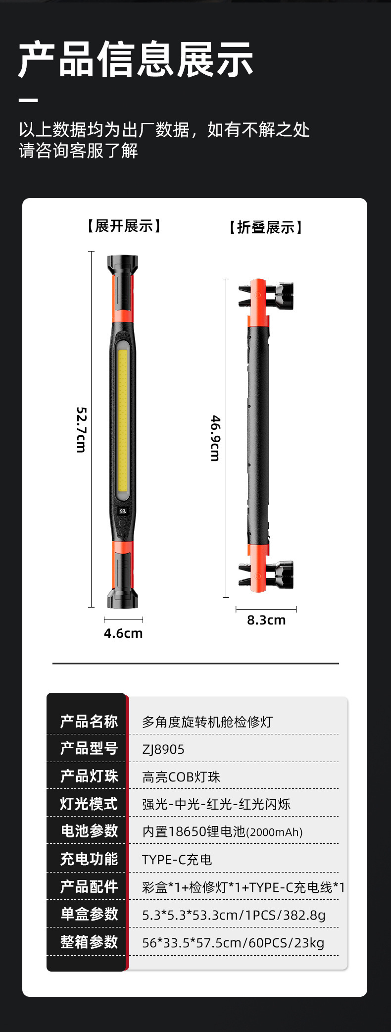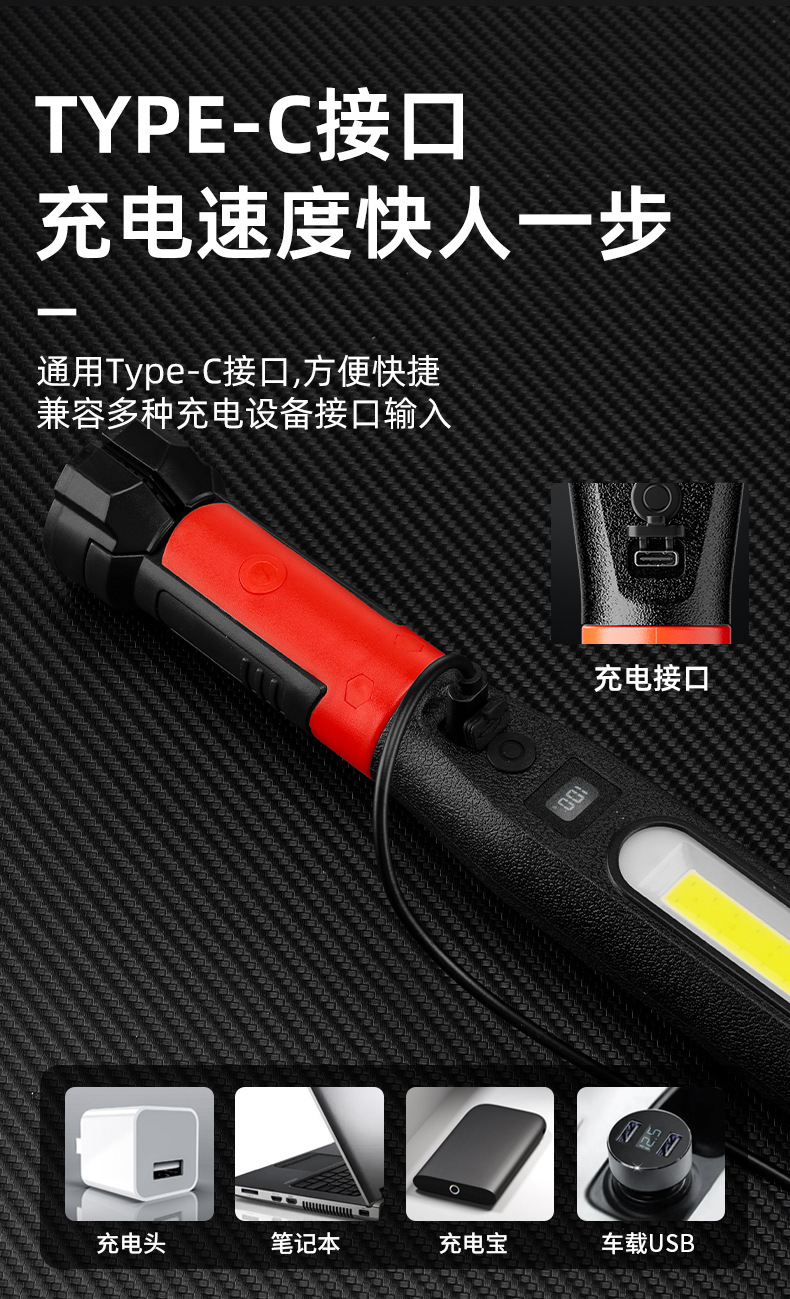 跨境新款磁吸COB工作灯USB充电多功能高亮磁吸挂钩长条汽车维修灯