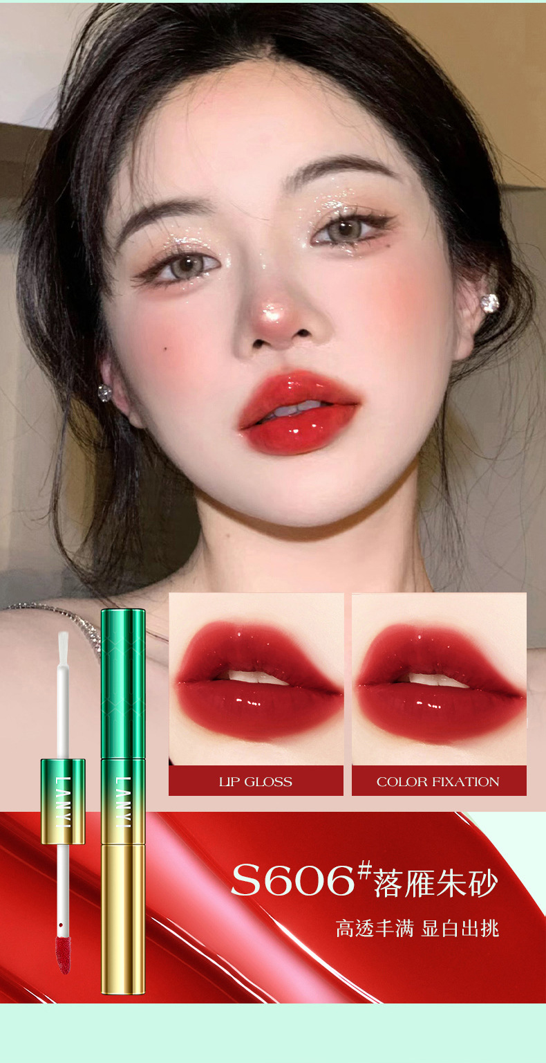 蘭奕印影ロック色レインコート口紅は色落ちしないカップ唇保護防水ディザネット赤国境を越えている
