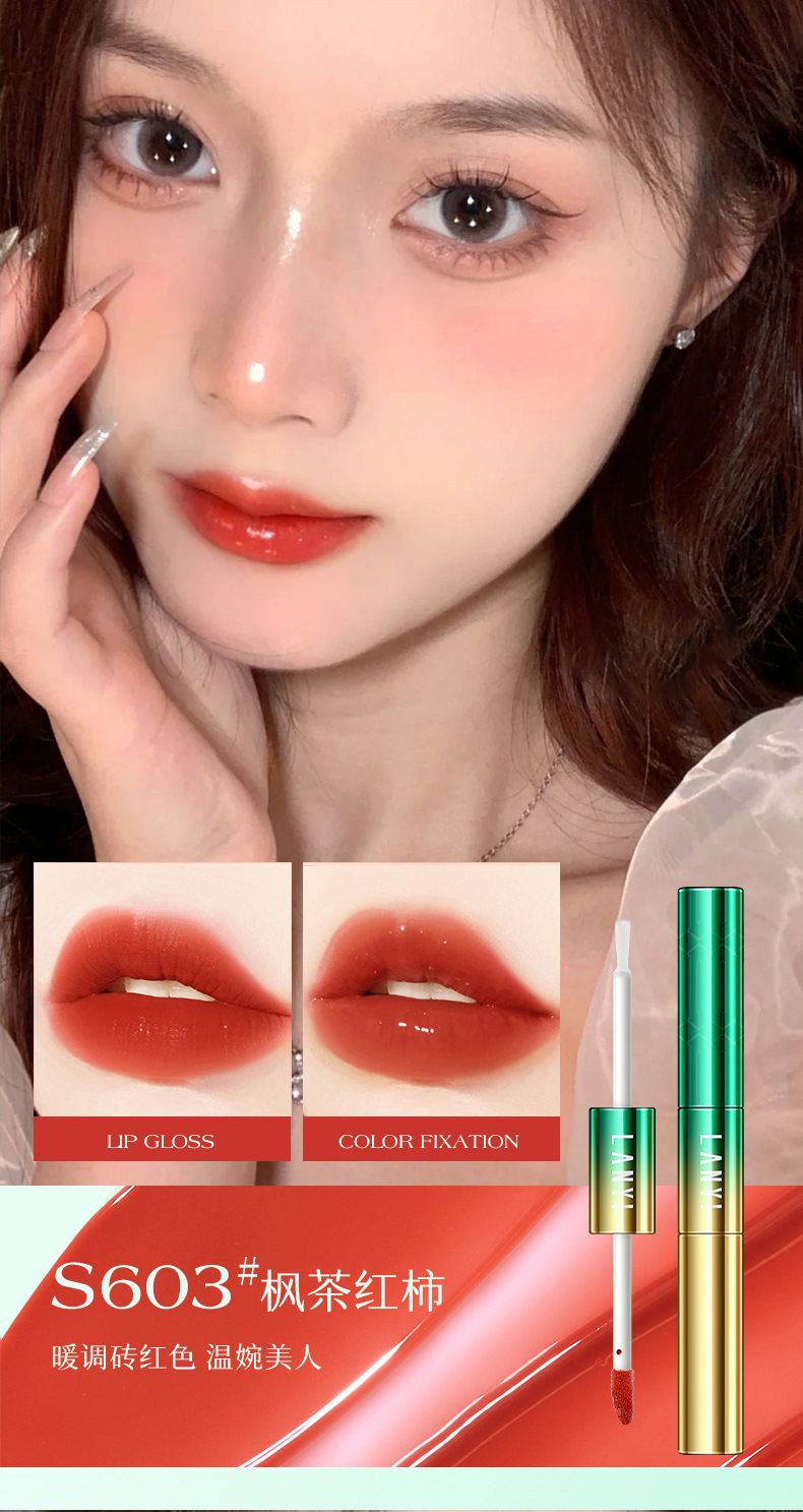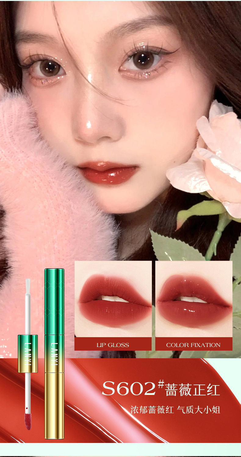 兰奕小黑钻淡纹固色雨衣口红不掉色不沾杯 素颜显白防水抖音网红