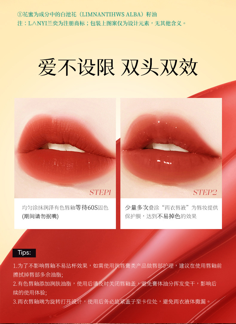 产品名称 兰奕花蜜固色雨衣唇釉