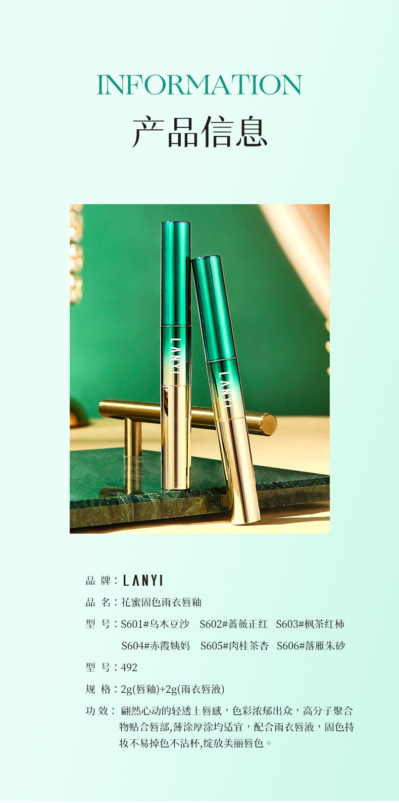 功效 保湿,防水,持久,不易脱色,易上色,不粘杯