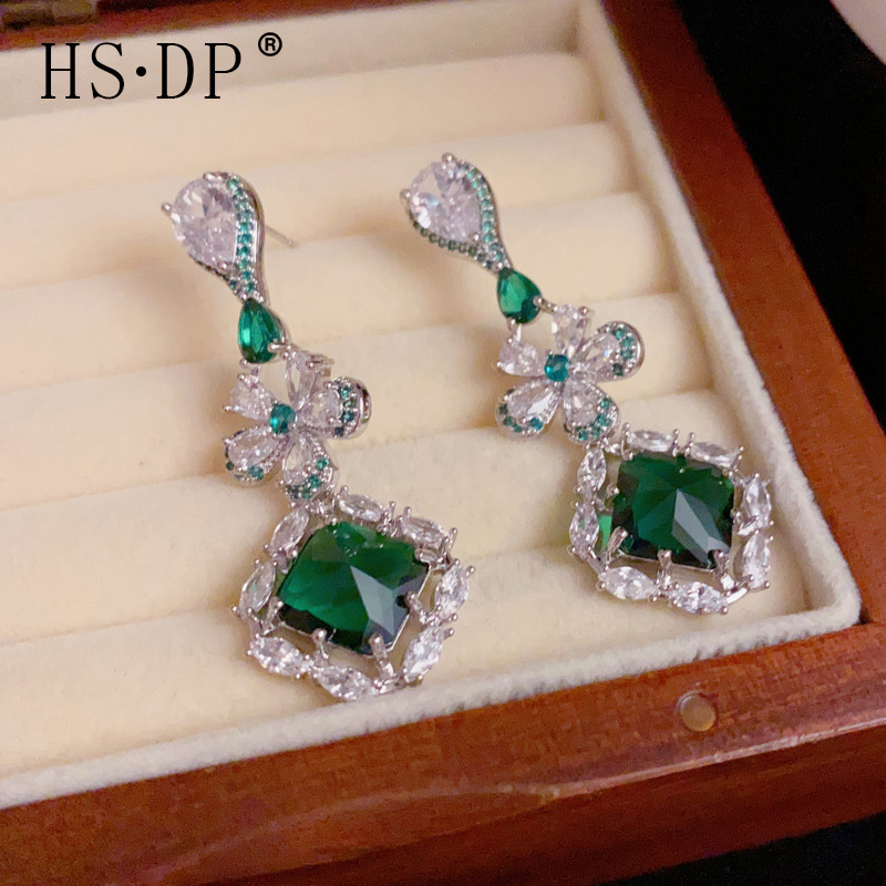 欧米の国境を越えた軽贅沢なファッションは高級感のある祖母の緑の流蘇耳が個性的な百合超フラッシュ耳飾り卸売りをしている
