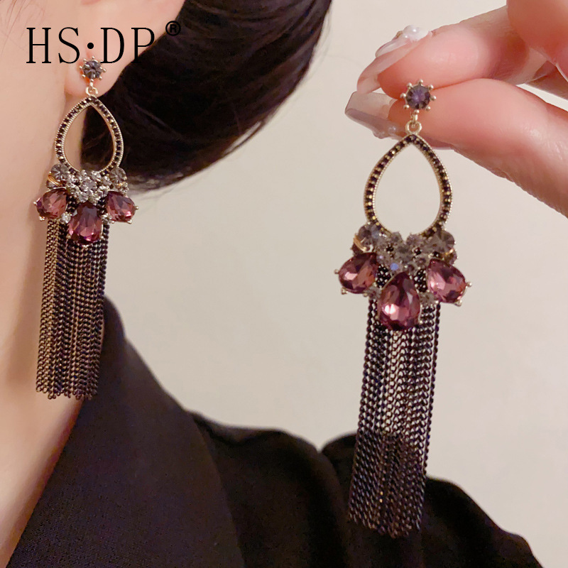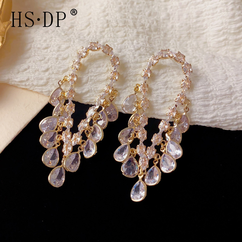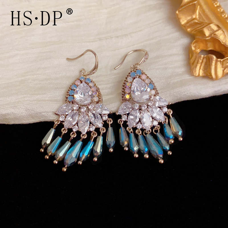 轻奢重工款波西米亚手工款锆石水滴流苏耳坠个性夸张串珠耳钩批发