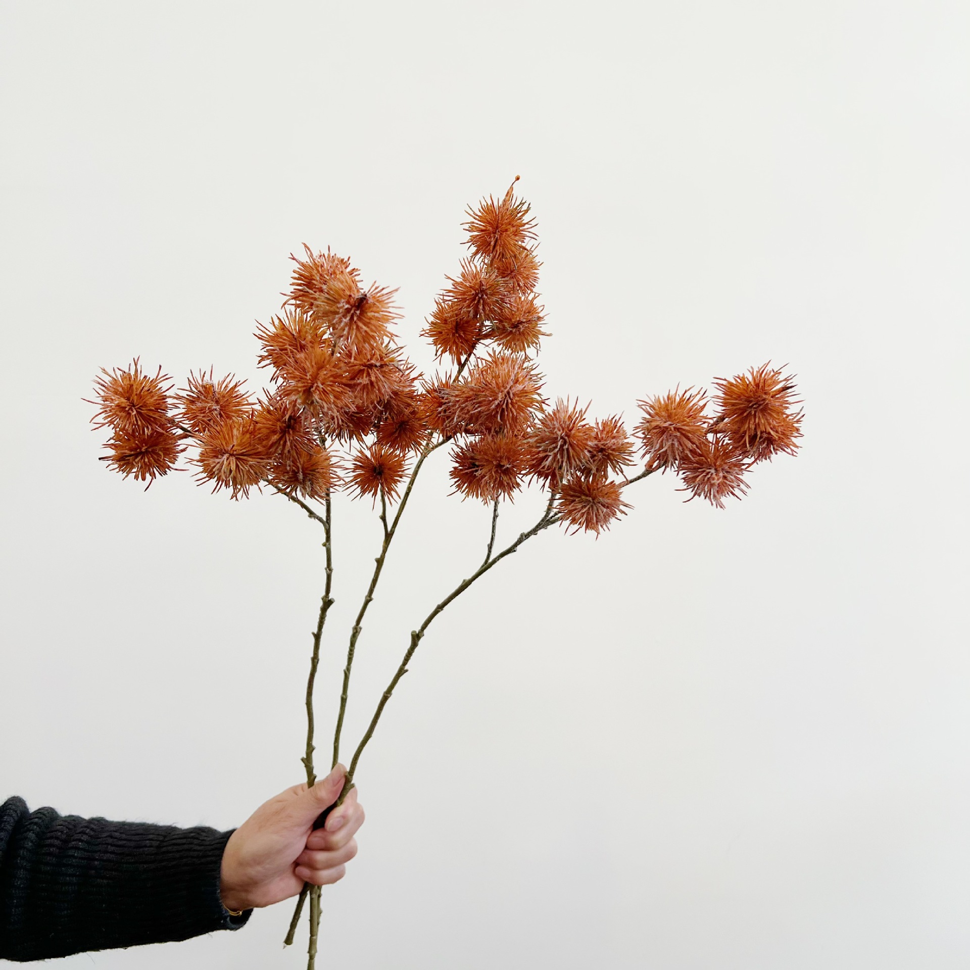 陽を含む枯れたトゲの実のボールはボールの黄金のリシンの実の生け花の配合材の秋系の花の装飾をシミュレーションします。