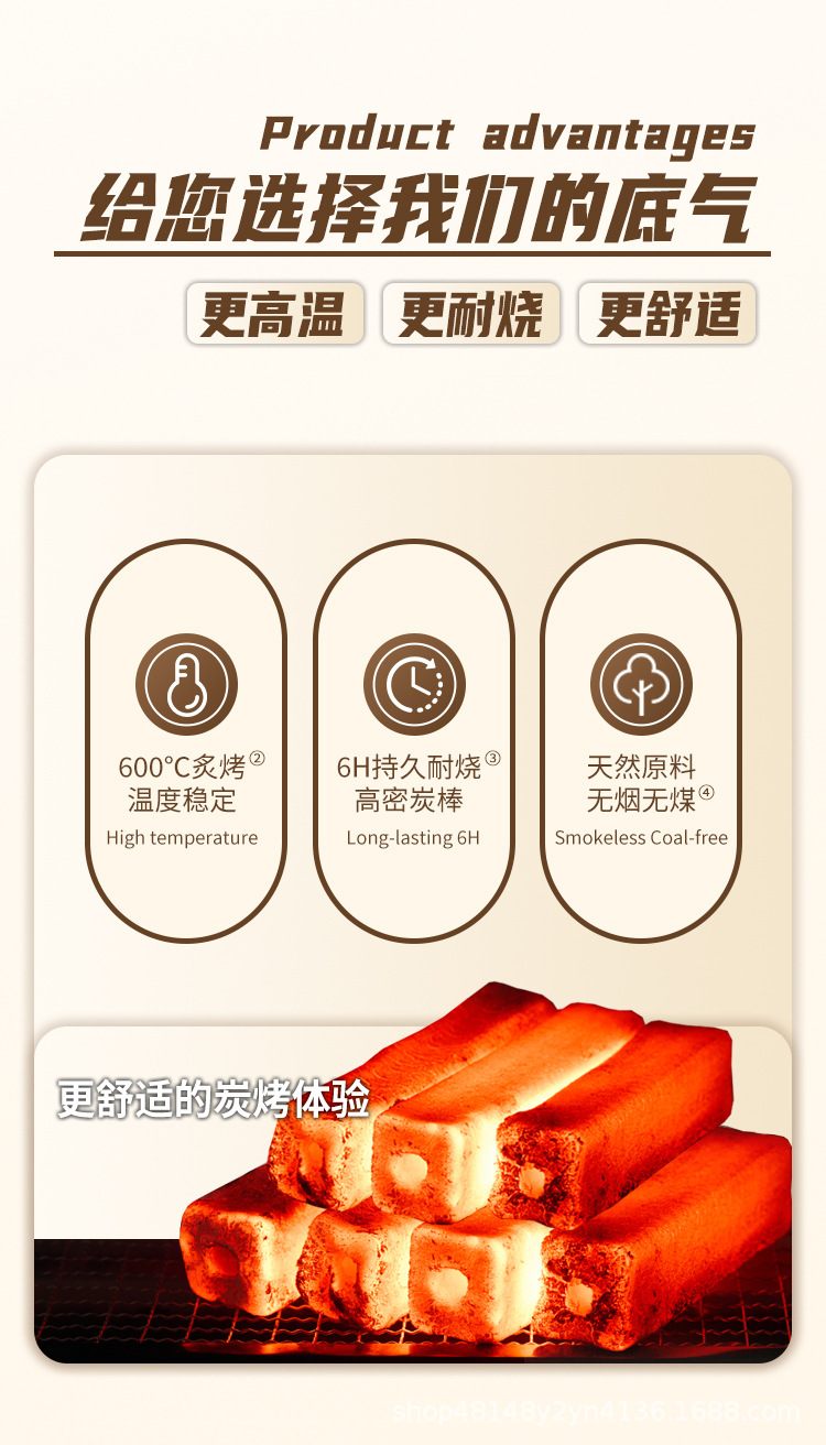 商用烧烤碳速燃无烟果木炭烤炉机制竹炭围炉煮茶专用室内烤火取暖