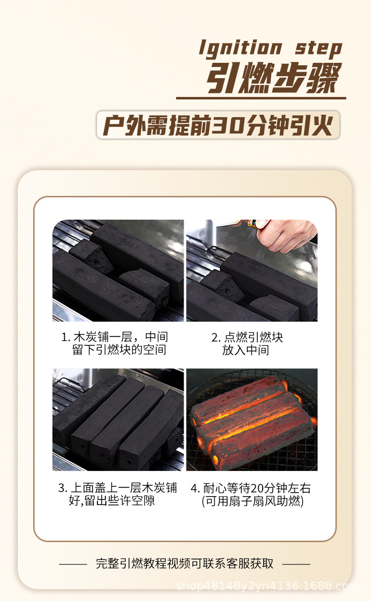 规格 烧烤木炭20斤装(内含助燃物*8+炭夹*1),烧烤木炭20斤装(内含炭夹*1),烧烤木炭10斤装(内含助燃物*4+炭夹*1),烧烤木炭10斤装(内含炭夹*1),烧烤木炭5斤装(内含助燃物*2+炭夹*1),烧烤木炭5斤装(内含炭夹*1),烧烤木炭2斤装(不含配件)