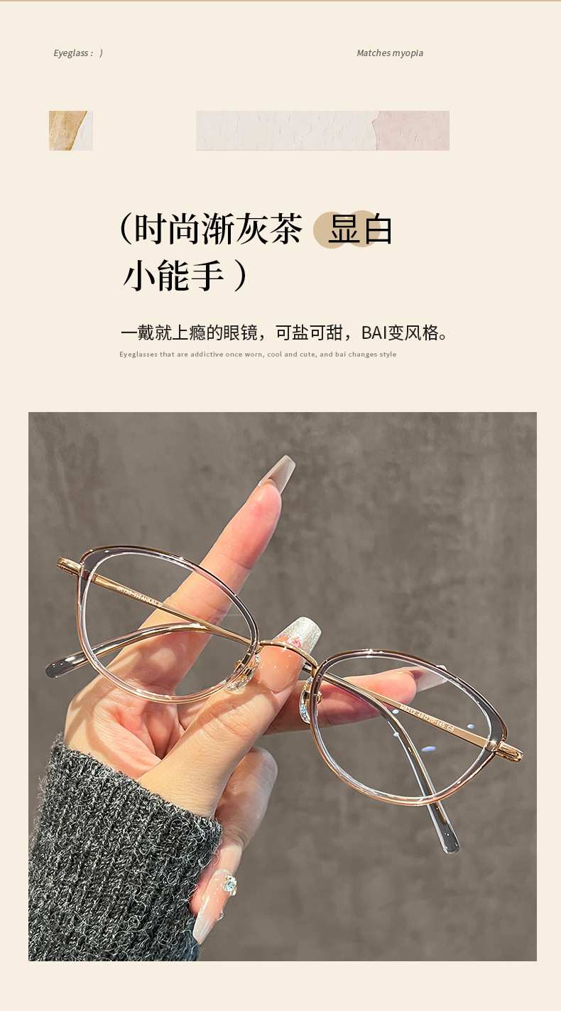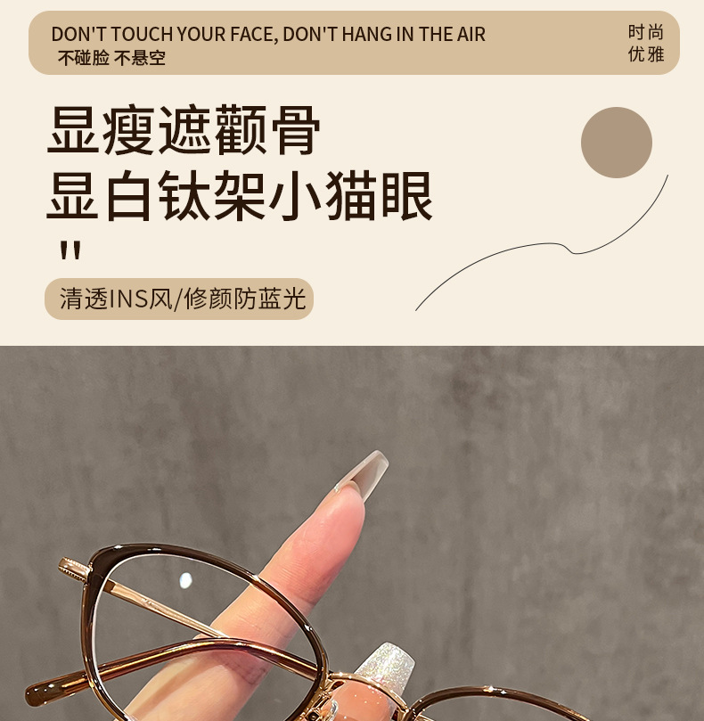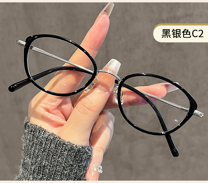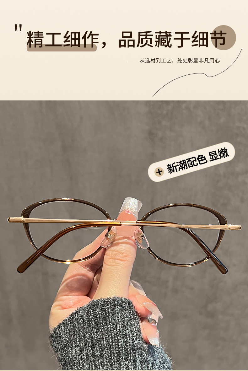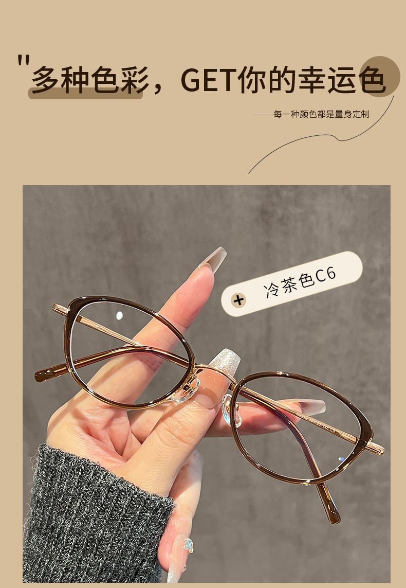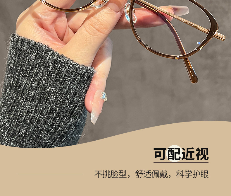 ネットで話題の冷茶色猫目メガネフレーム 女性用 高級感 81059-1 レトロ 無地 ブルーライトカットメガネ 近視用 人気商品