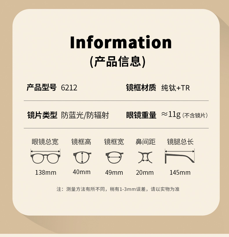 镜架材质 纯钛,TR90