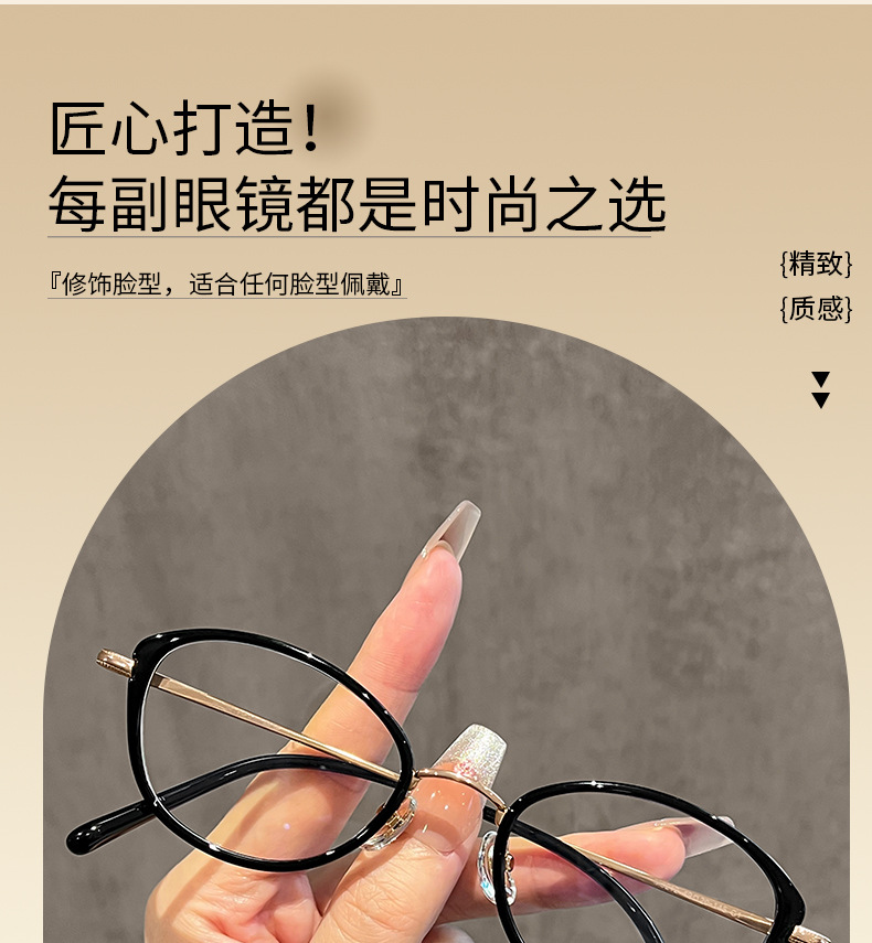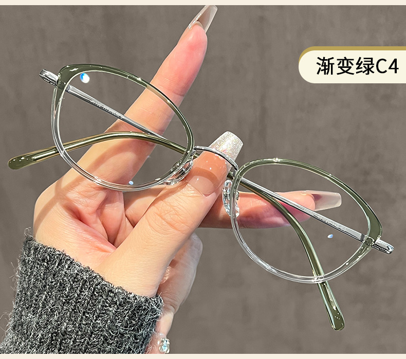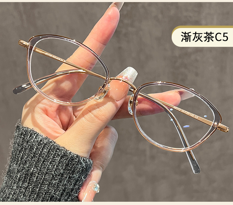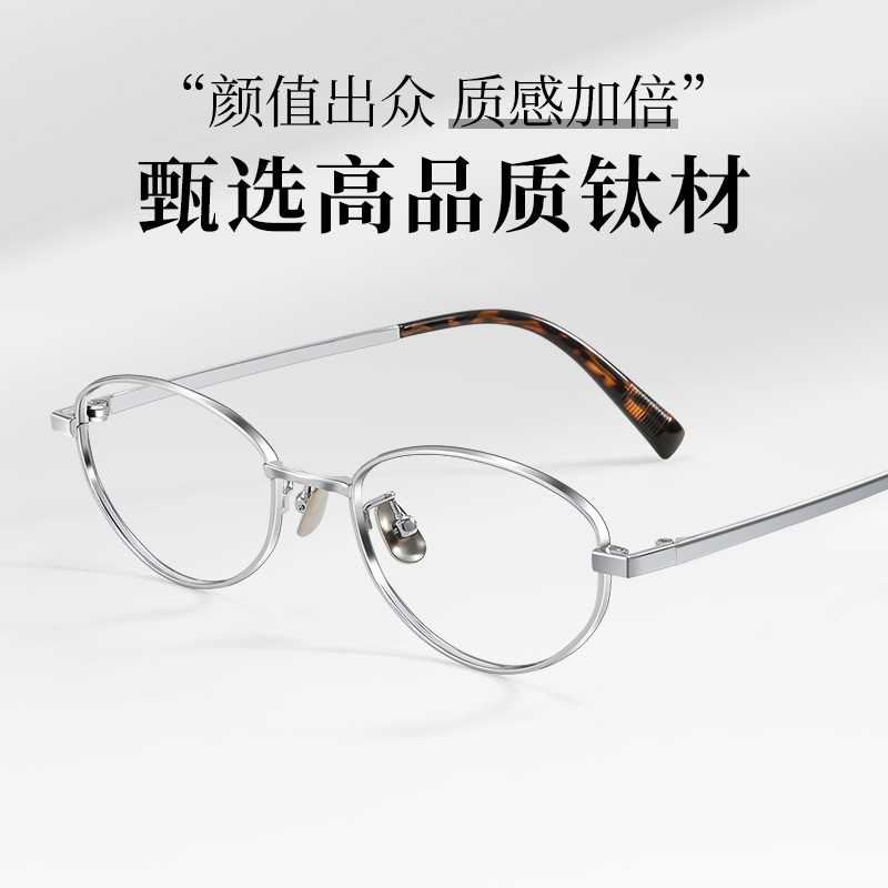 老钱风猫眼款镜框方圆脸清冷感纯钛镜架女30920高智感眼镜近视