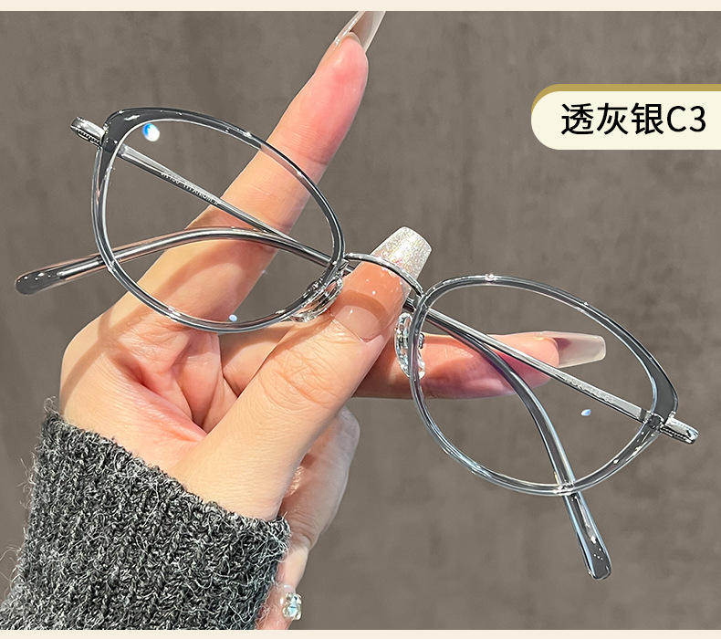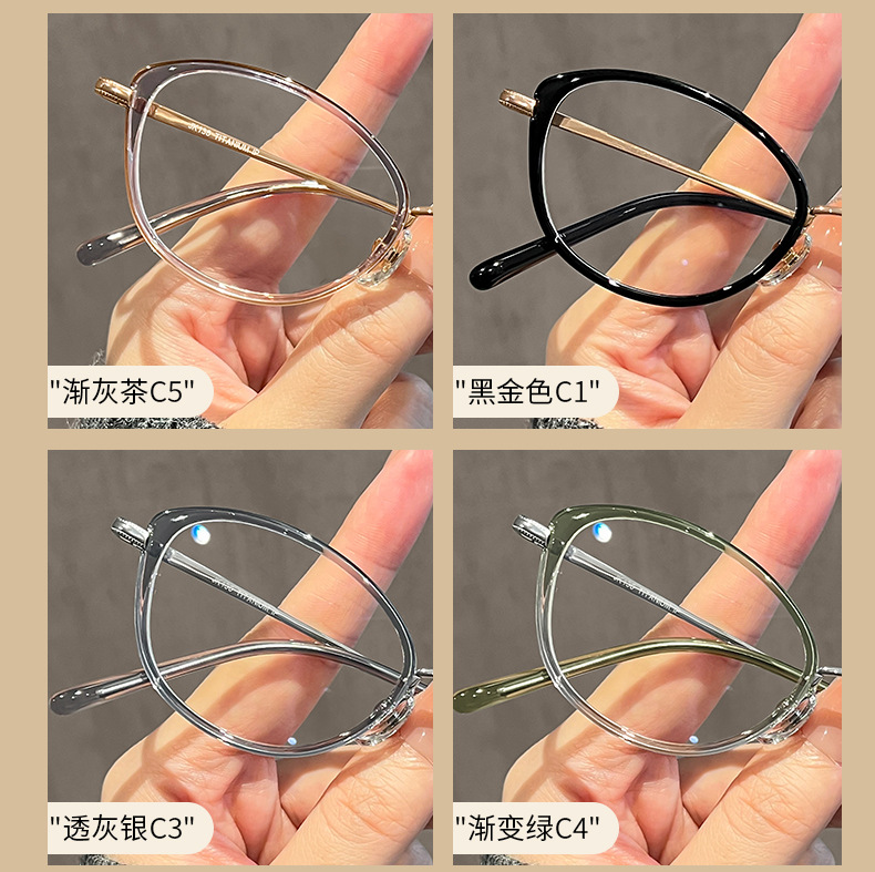 フェイクオタク風楕円フレーム高級感女性用べっ甲柄メガネフレーム近視用超軽量メガネフレーム無地TR
