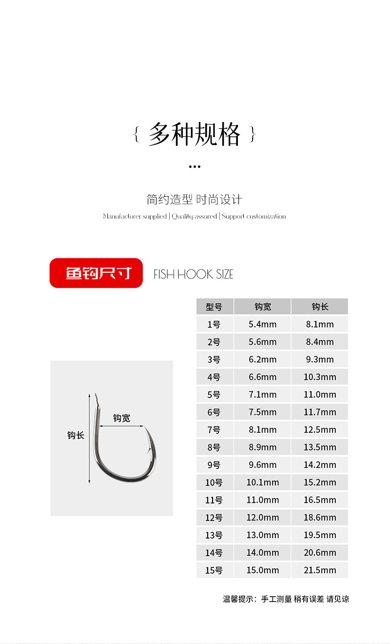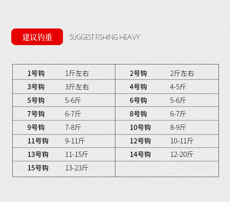 鱼钩号码 1号~14号