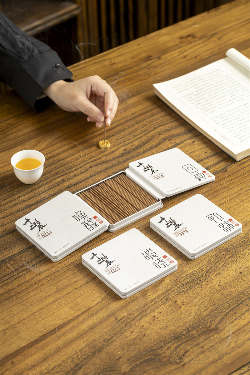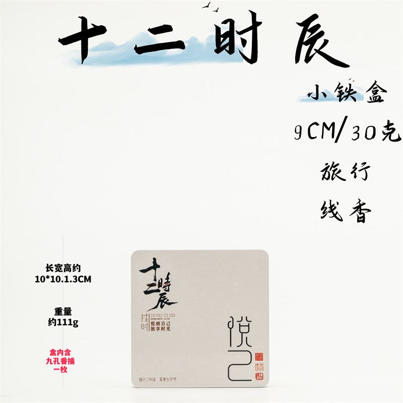 香型 【半闲】龙井玉兰 1盒,【初沐】龙涎香 1盒,【归寂】沉香 1盒,【回神】芽庄鹅梨 1盒,【宁静】梅间竹醒 1盒,【暖尘】西澳 1盒,【破晓】梅骨禅 1盒,【日落】港桧 1盒,【入定】雪中春信 1盒,【晚醒】咖啡香 1盒,【月下】药香 1盒,【悦己】玫瑰香 1盒,【十二时辰】每款各1盒