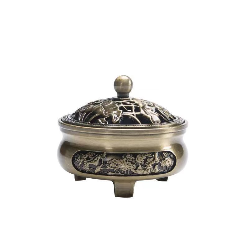 銅合金三足ハスの花盤香炉香篆炉合金香炉家庭用盤香炉室内薫香炉香薫炉