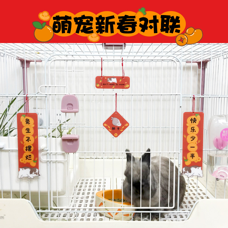 新年ペット対聯旧正月装飾ストラップアクリルウサギ新春小対聯ウサギ籠春聯