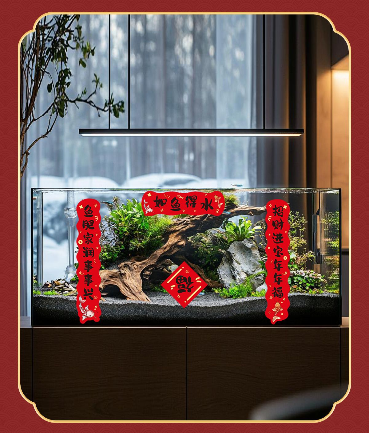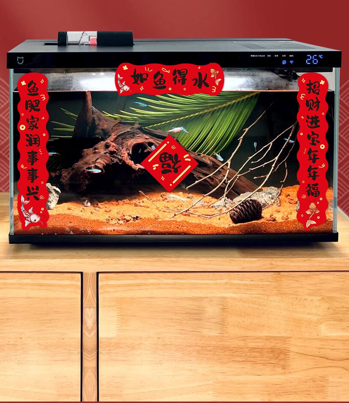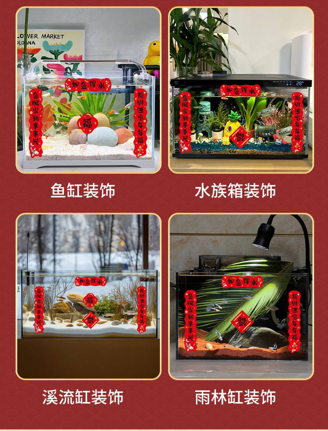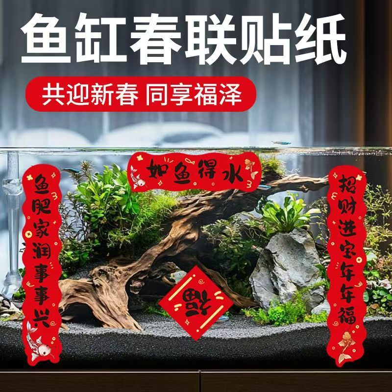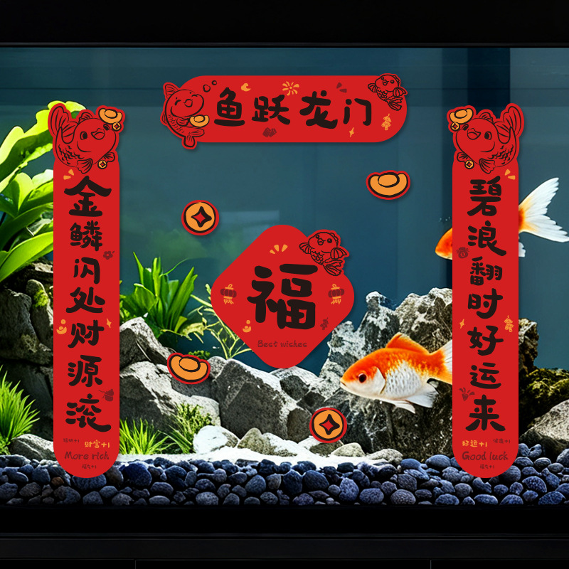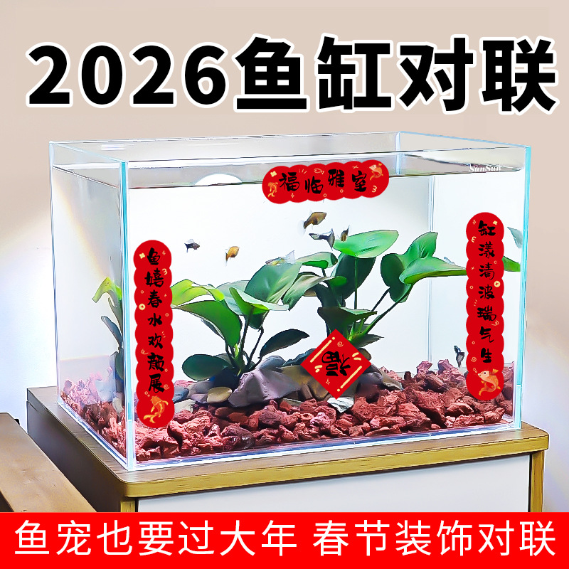 2026春节鱼缸对联2026新年喜庆装饰贴纸水族乌龟缸造景迷你过马年