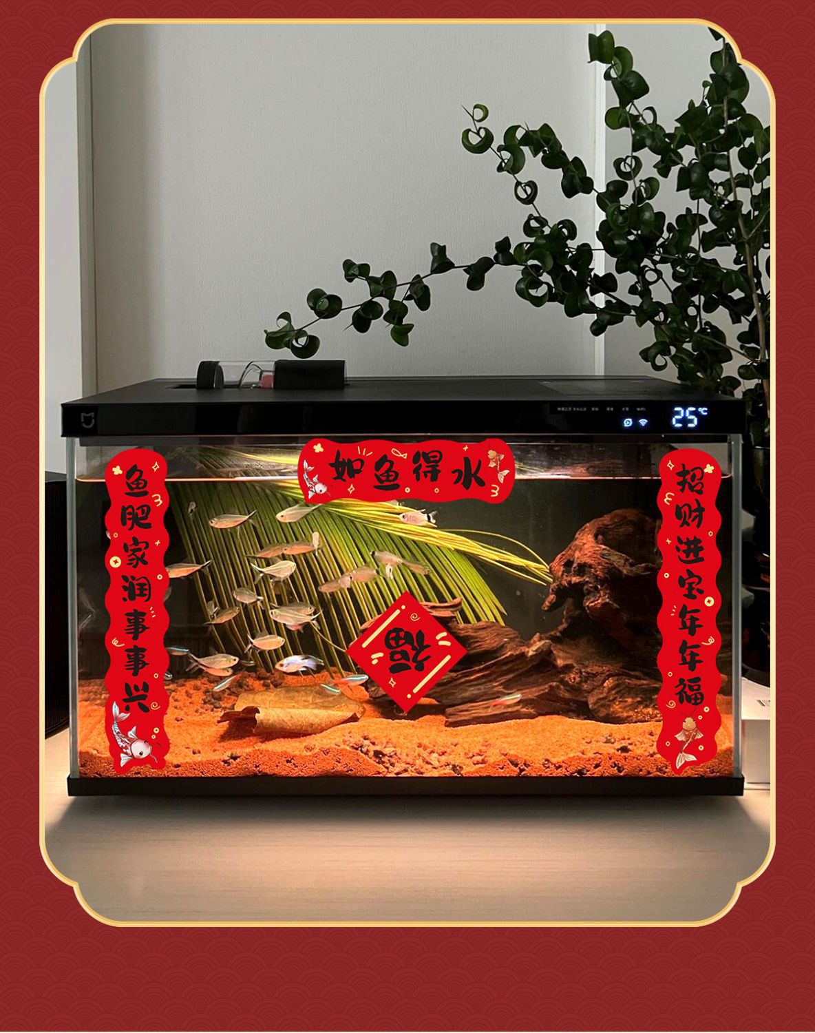 鱼缸对联2026新年马年贴纸喜庆装饰水族乌龟缸造景迷你宠物春联