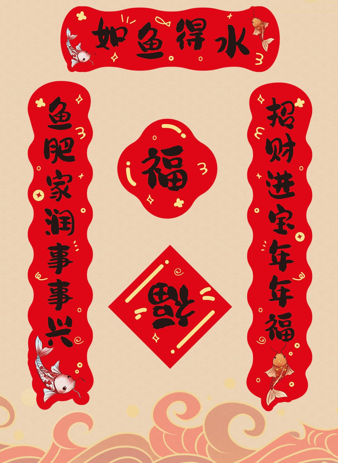 颜色 【如鱼得水】宠物新春小对联,【诸事顺遂】宠物新春小对联,【完美鼠生】宠物新春小对联,【财猫双全】宠物新春小对联,【汪旺大吉】宠物新春小对联,【金钱龟来】宠物新春小对联