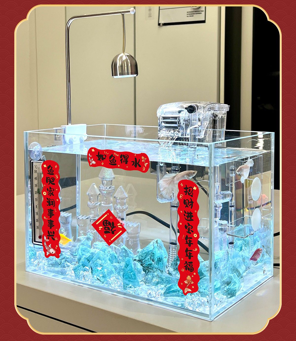 悦小萌鱼缸对联2026新年喜庆装饰贴纸水族桌面缸造景迷你宠物春联