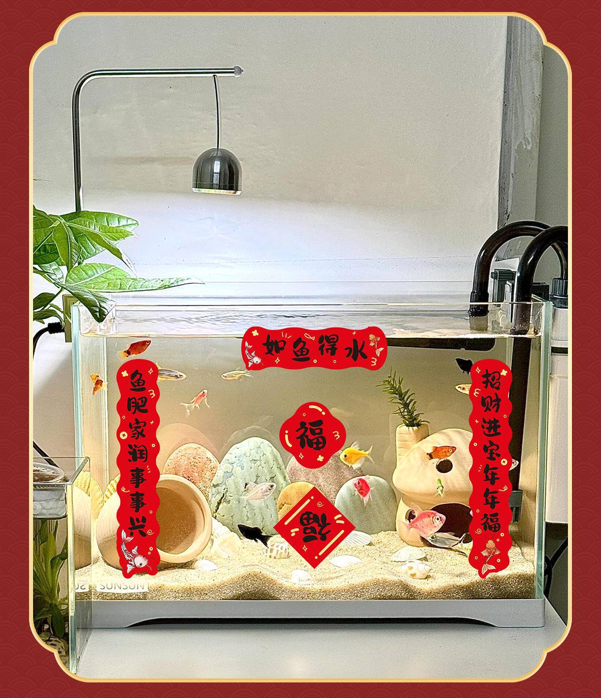 宠物新年春联鱼缸对联趣味新年门贴迷你门联过年对联鱼具春节装饰