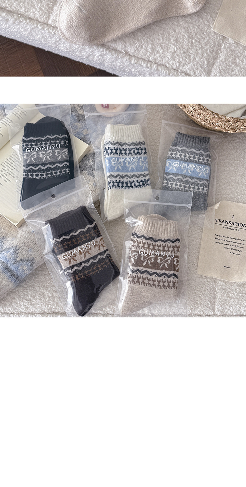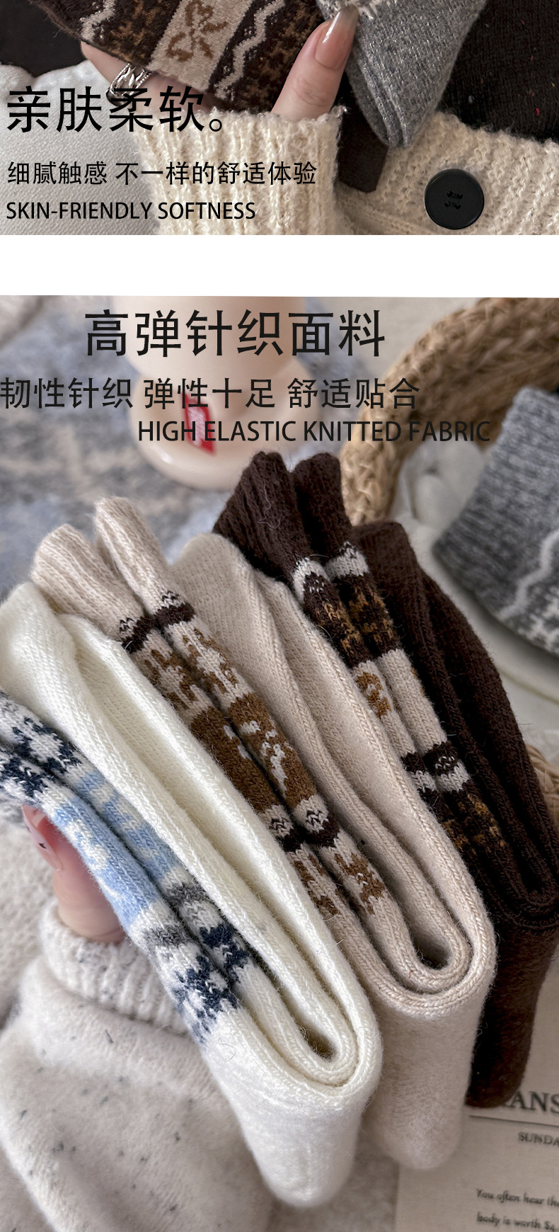 费尔岛雪花日系秋冬袜子女复古撞色羊毛袜加厚保暖女中筒堆堆袜