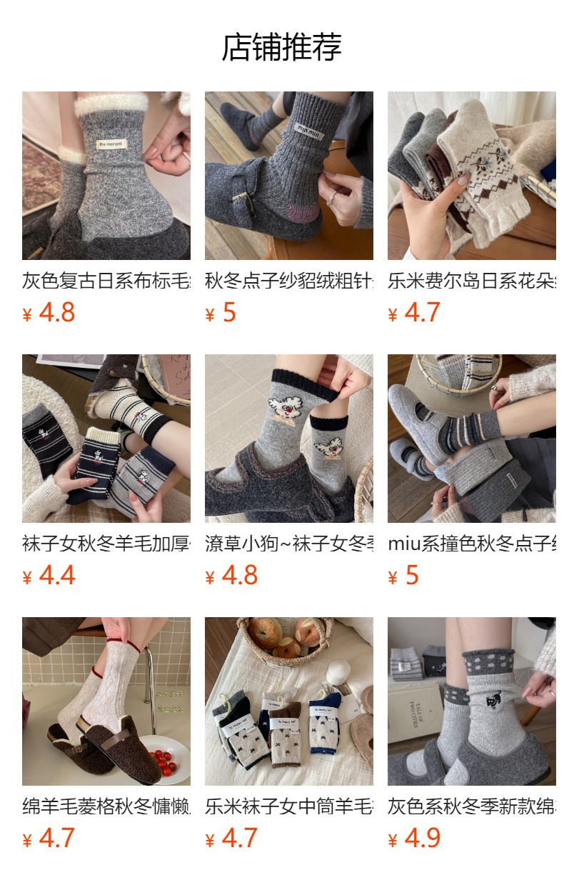 纯色保暖羊毛中筒袜子女细条纹学院风堆堆袜秋冬日系加厚诸暨袜子