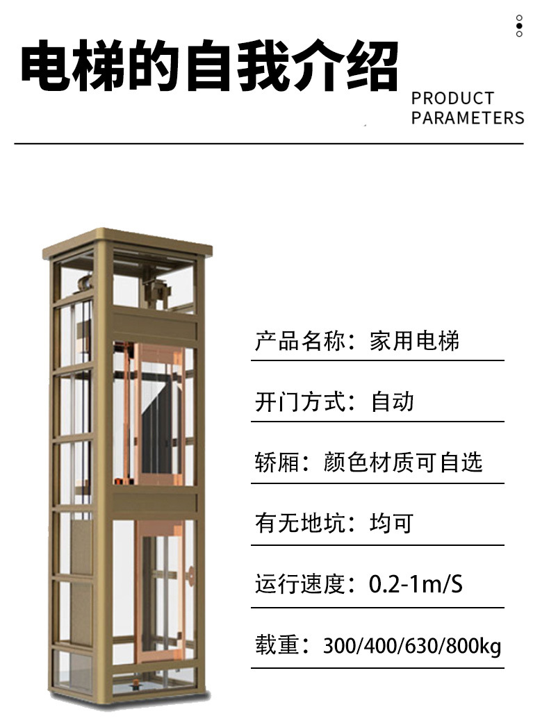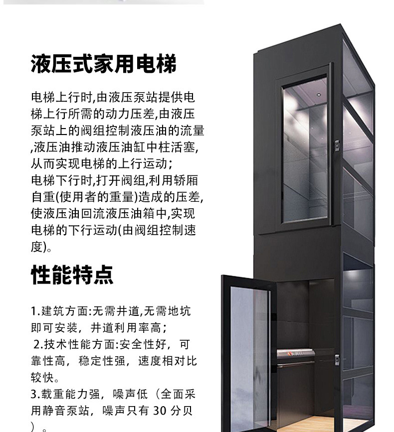 家用电梯小型无底坑二三四五层室内外观光电梯液压别墅家用电梯