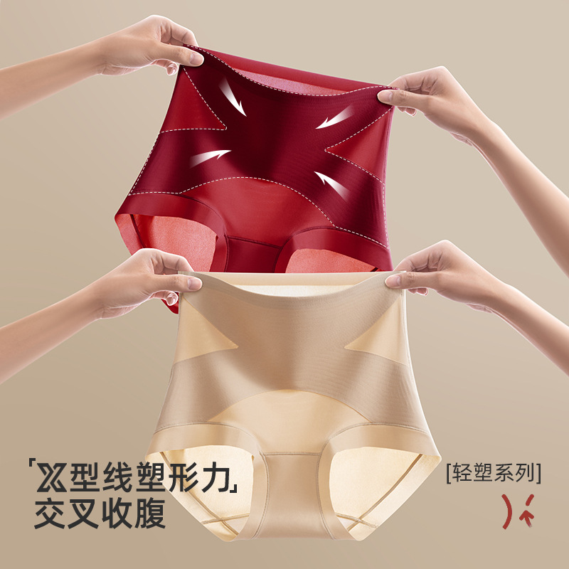 交叉微压轻塑肌底内裤女士隐形无痕高腰加长底裆收腹提臀美体裤