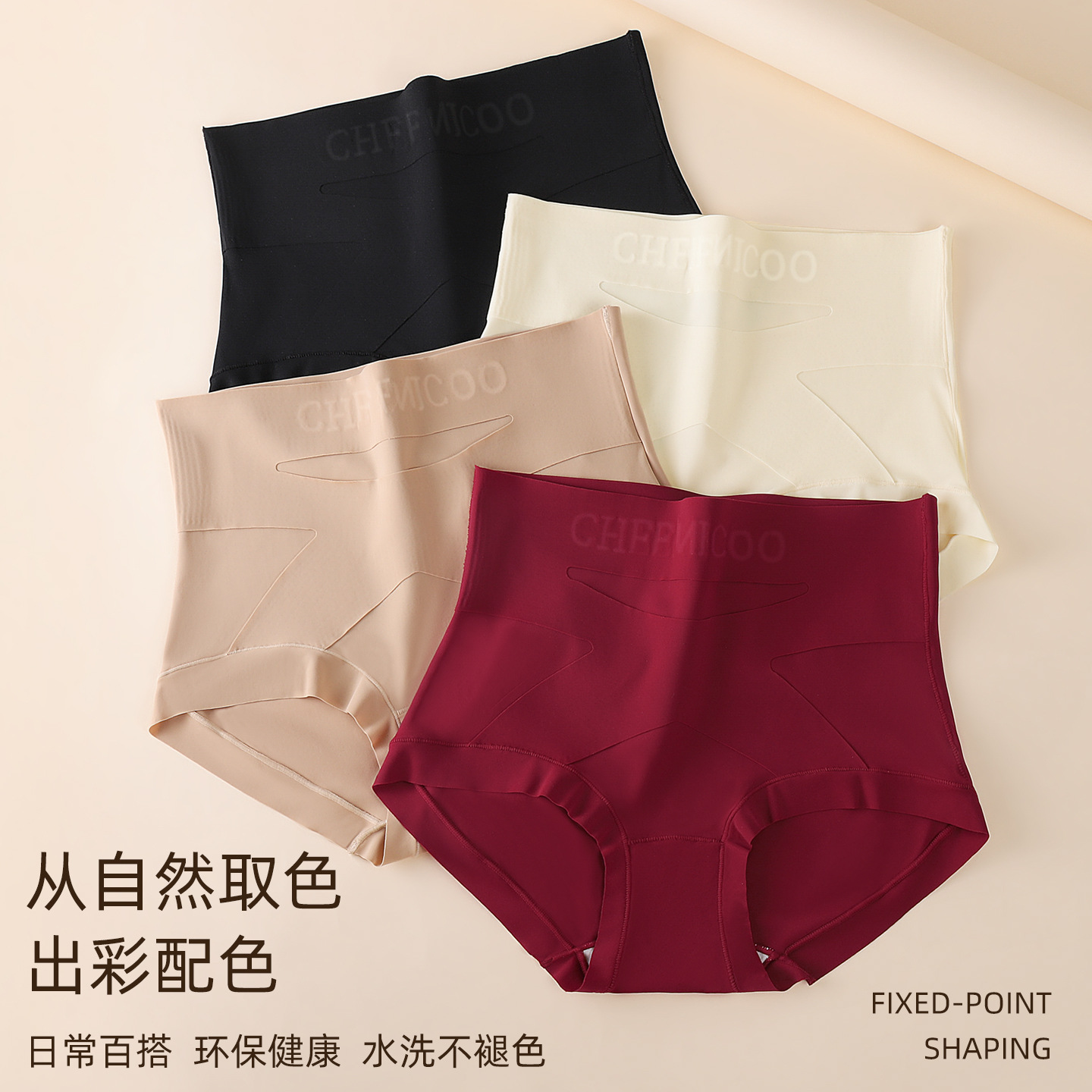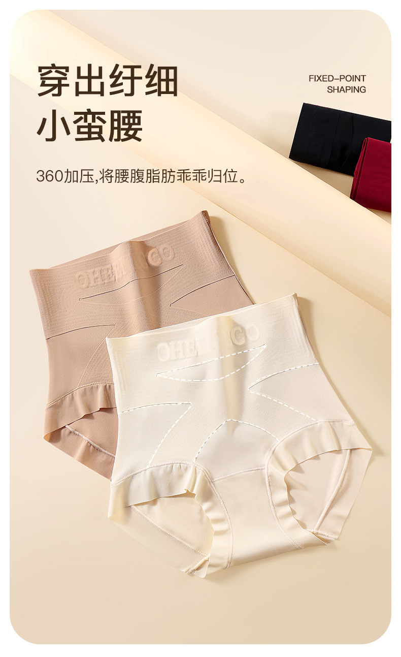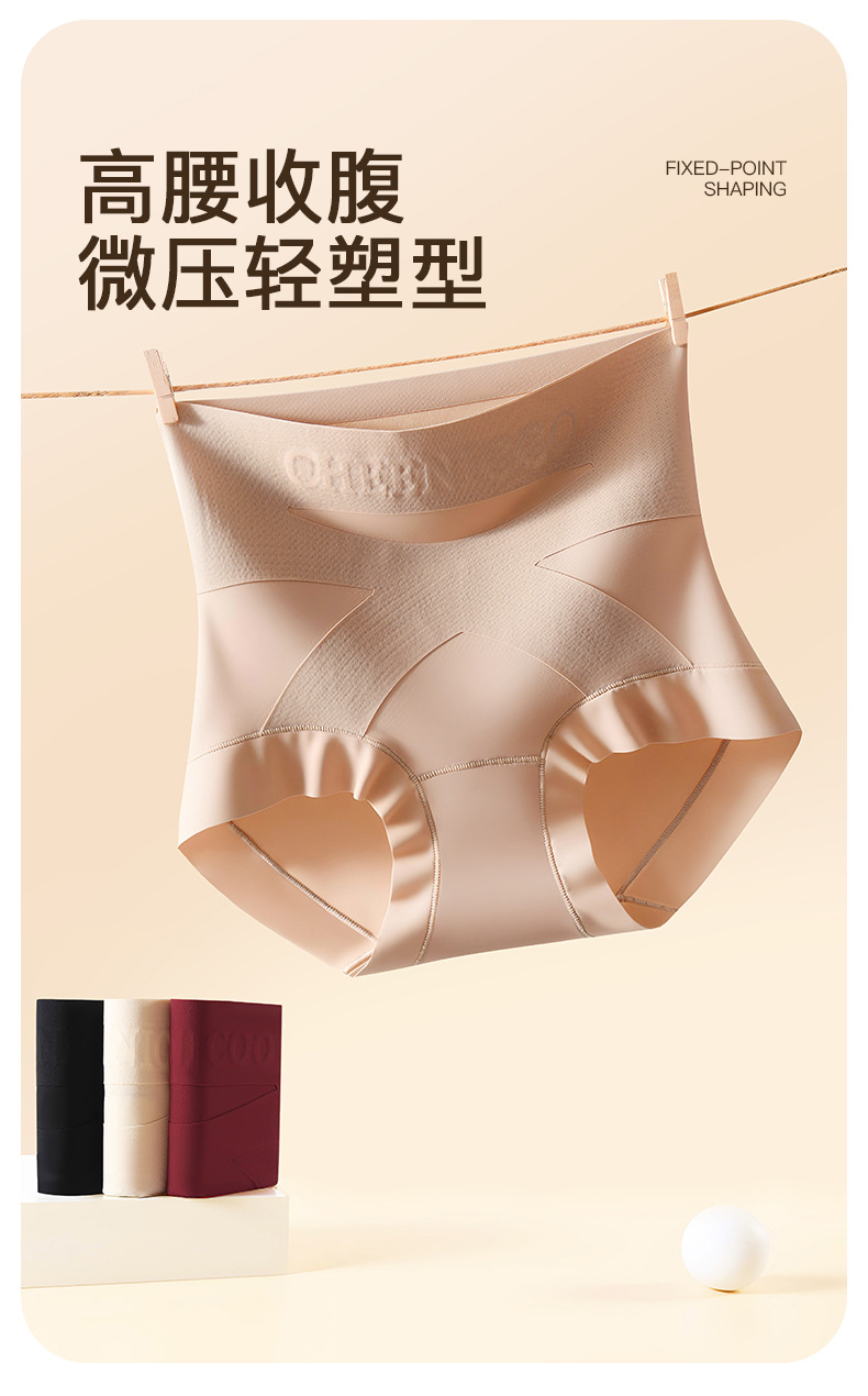 X绷带高腰收腹无痕隐形三角裤女提臀塑形10A抗菌蚕丝加长底裆内裤