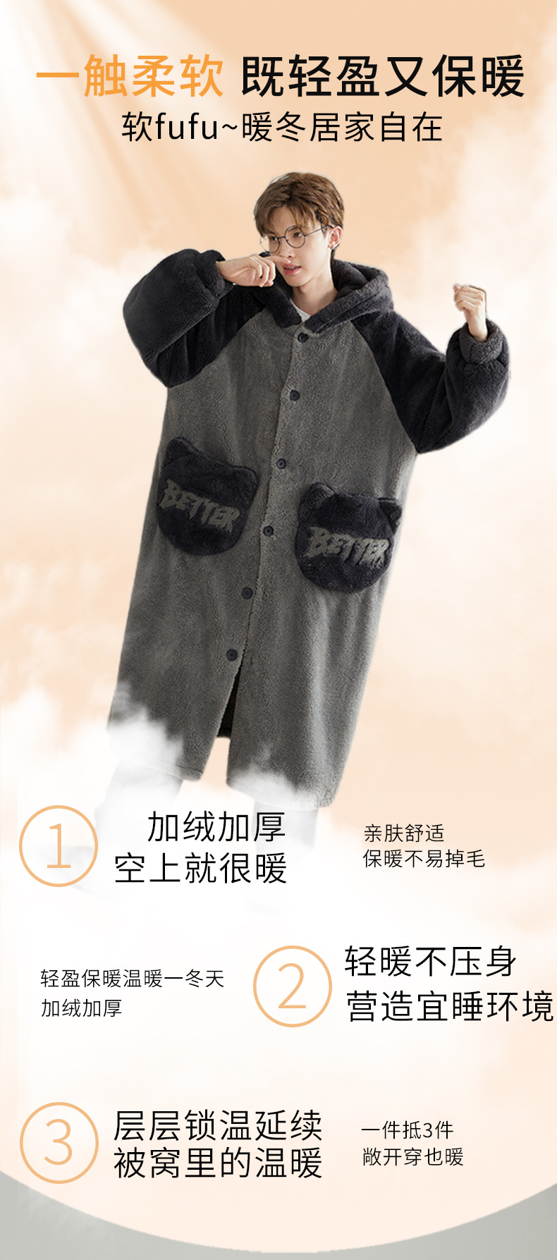 功能 休闲,睡眠,居家,保暖,舒适,可外穿