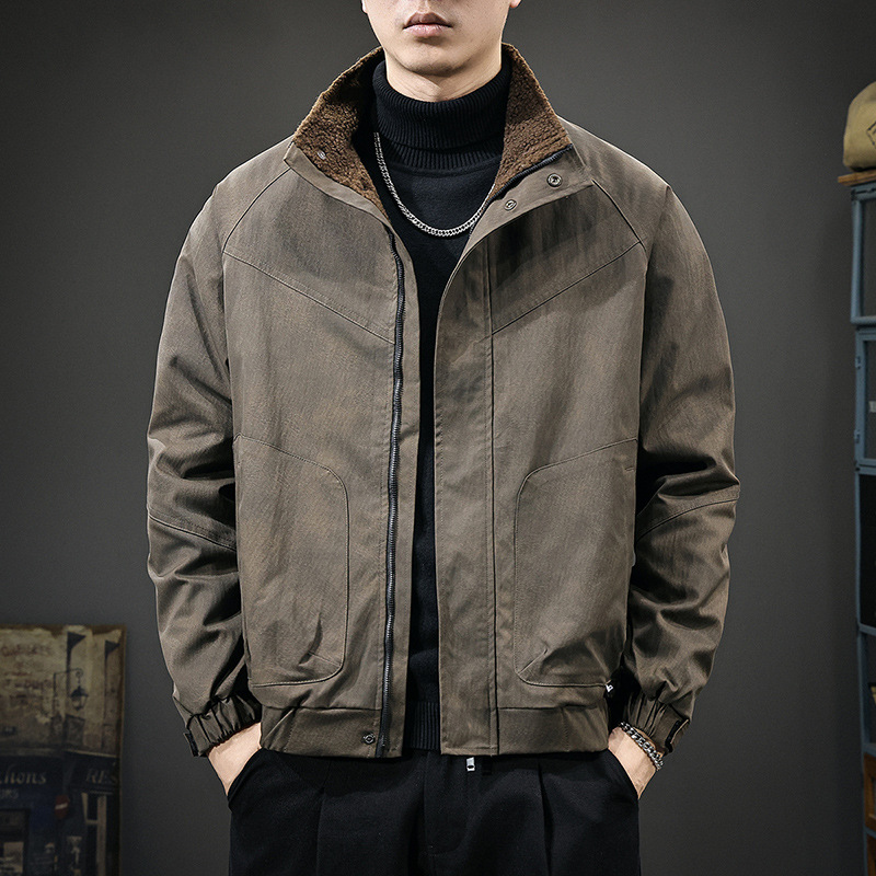 秋冬新款羊羔绒内里夹克男美拉德立领户外防风宽松保暖飞行员外套