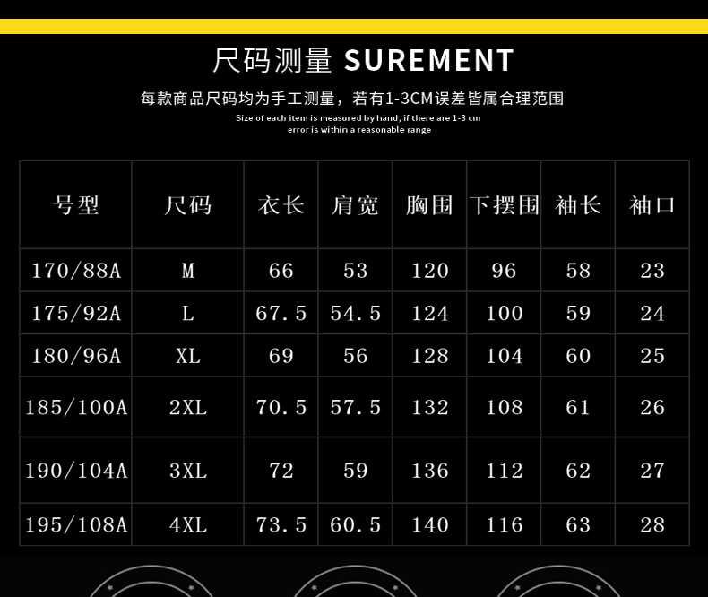 尺码 M 适合100-120斤,L 适合120-140斤,XL 适合140-160斤,2XL 适合160-180斤,3XL 适合180-200斤,4XL 适合200-220斤