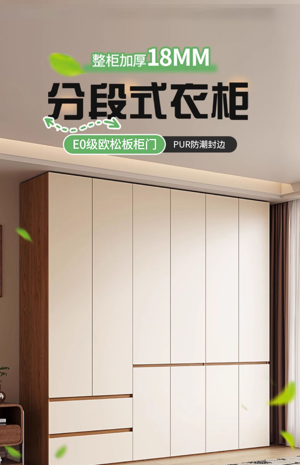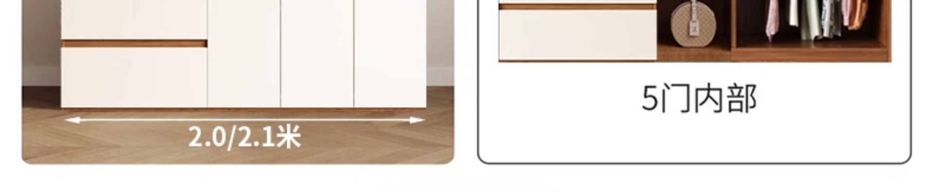 实木衣柜家用卧室奶油风分段式现代简约网红柜子小户型收纳大衣橱