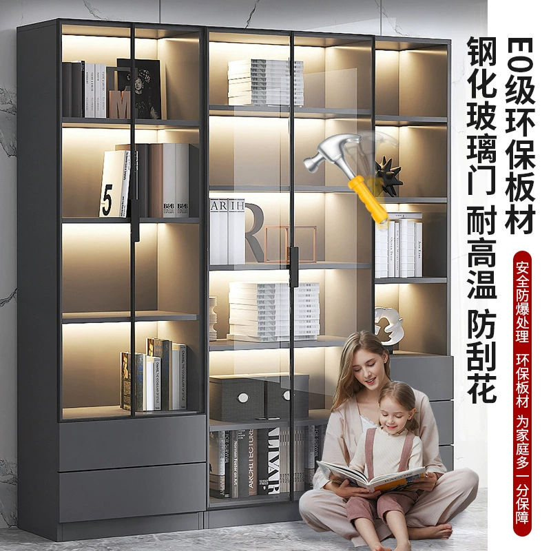 ガラス扉付き本棚、ワインキャビネット、軽くて豪華なホームリビングルーム、一体型キャビネット、壁全体の収納キャビネット、リビングルーム無垢材本棚