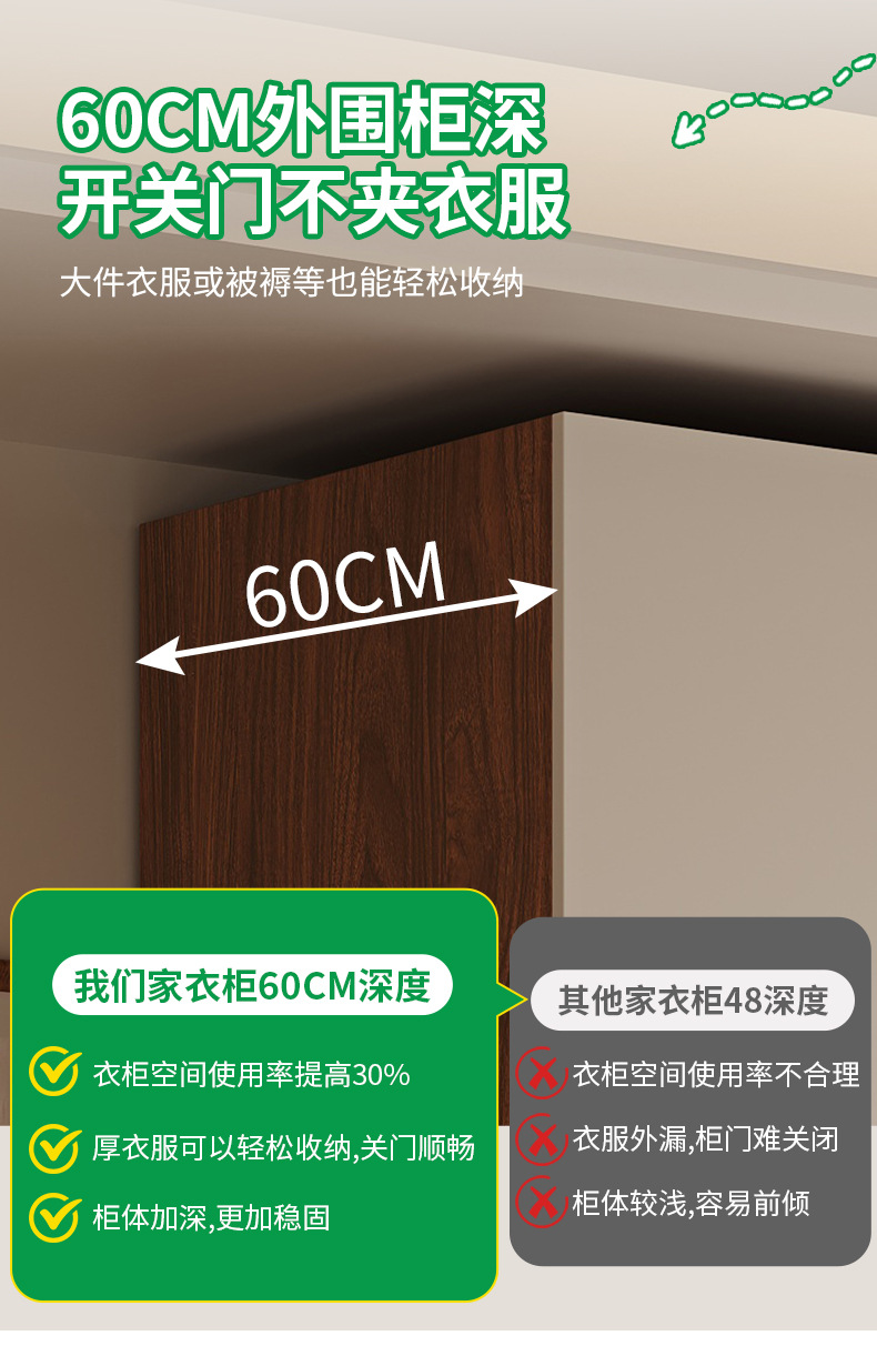 加厚实木衣柜卧室家用储物衣橱家用加深60储物柜收纳柜落地全屋柜