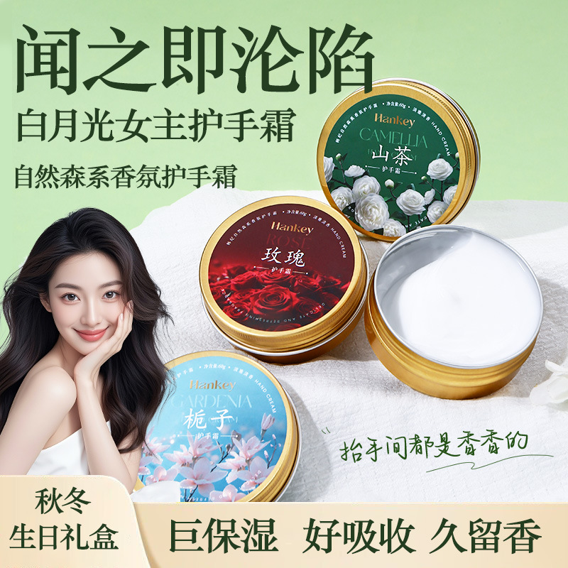 韩纪自然森系香氛护手霜山茶玫瑰栀子滋润保湿秋冬护手霜厂家批发