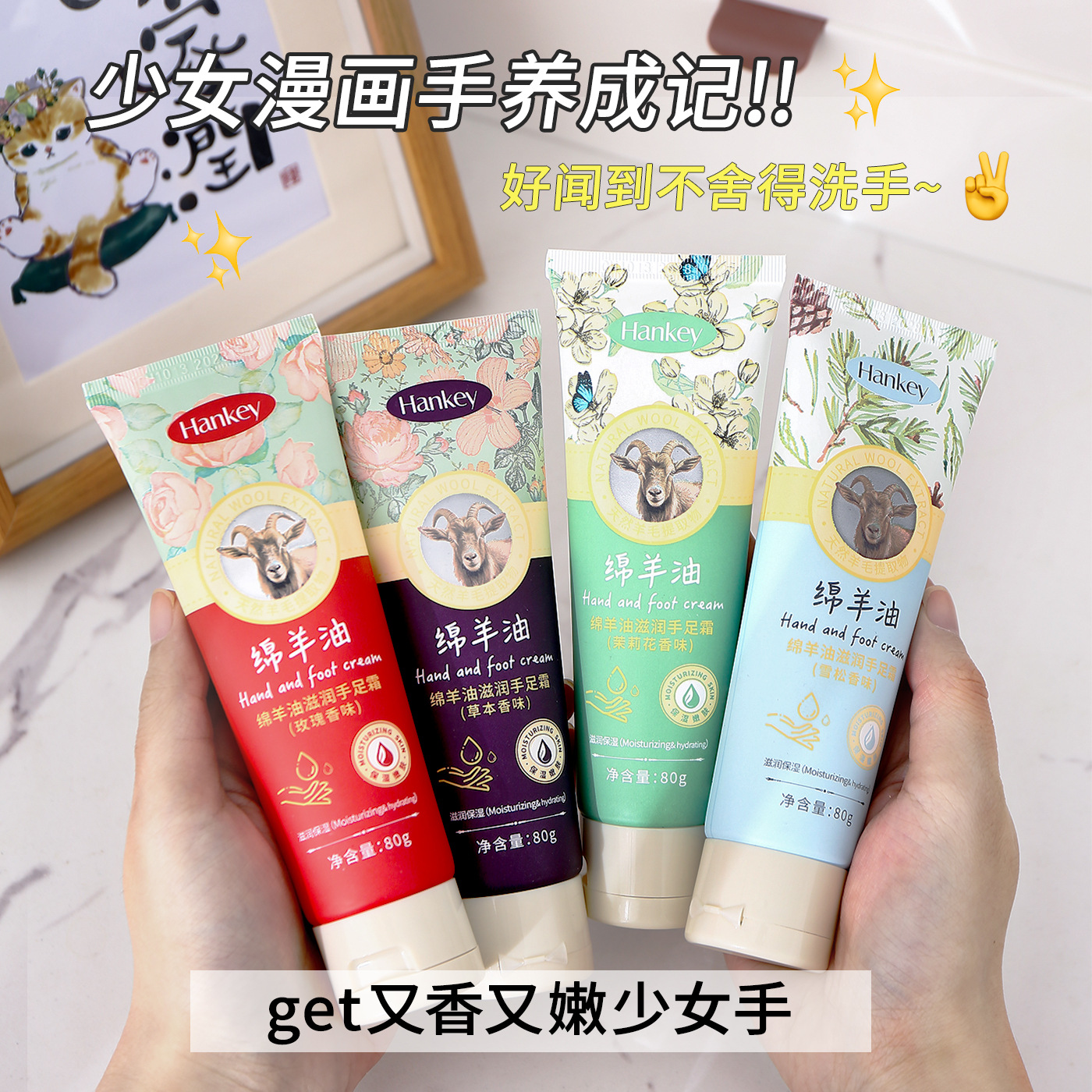 韩纪绵羊油滋润手足霜80g秋冬补水滋润护手霜防干裂化妆品厂家