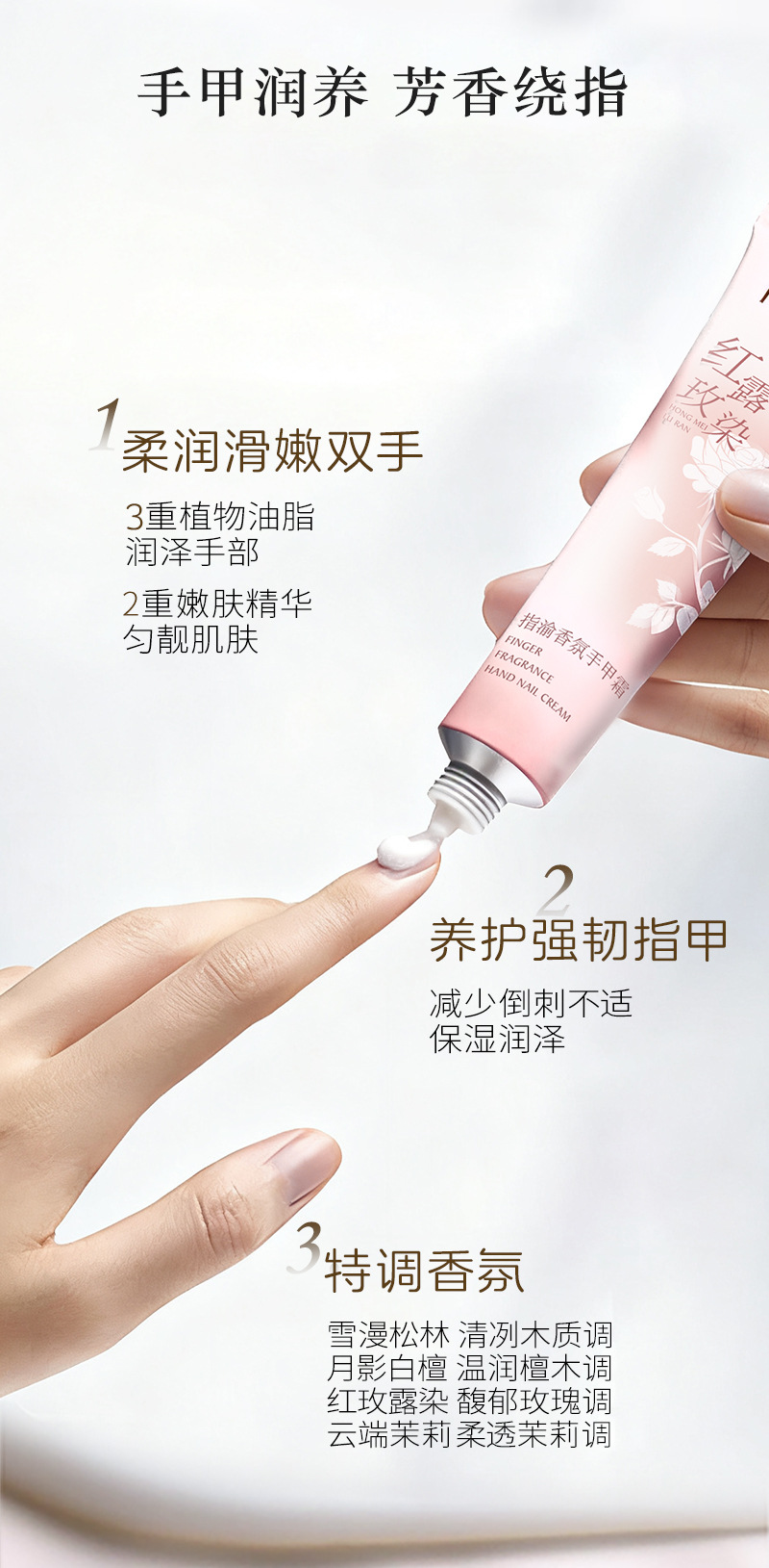 韩纪指渝香氛手甲霜护手霜滋润防倒刺玫瑰茉莉松林香润手霜伴手礼