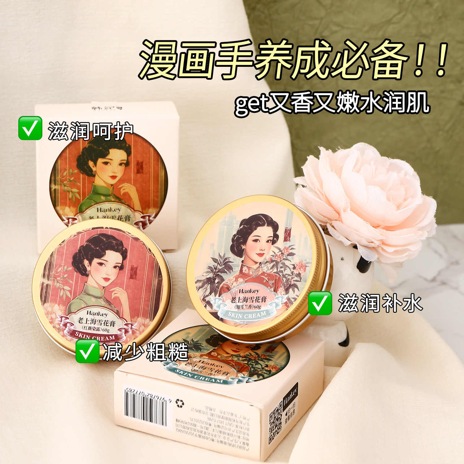 韩纪老上海雪花膏花香型清爽防裂补水滋润改善干燥秋冬爆款面霜