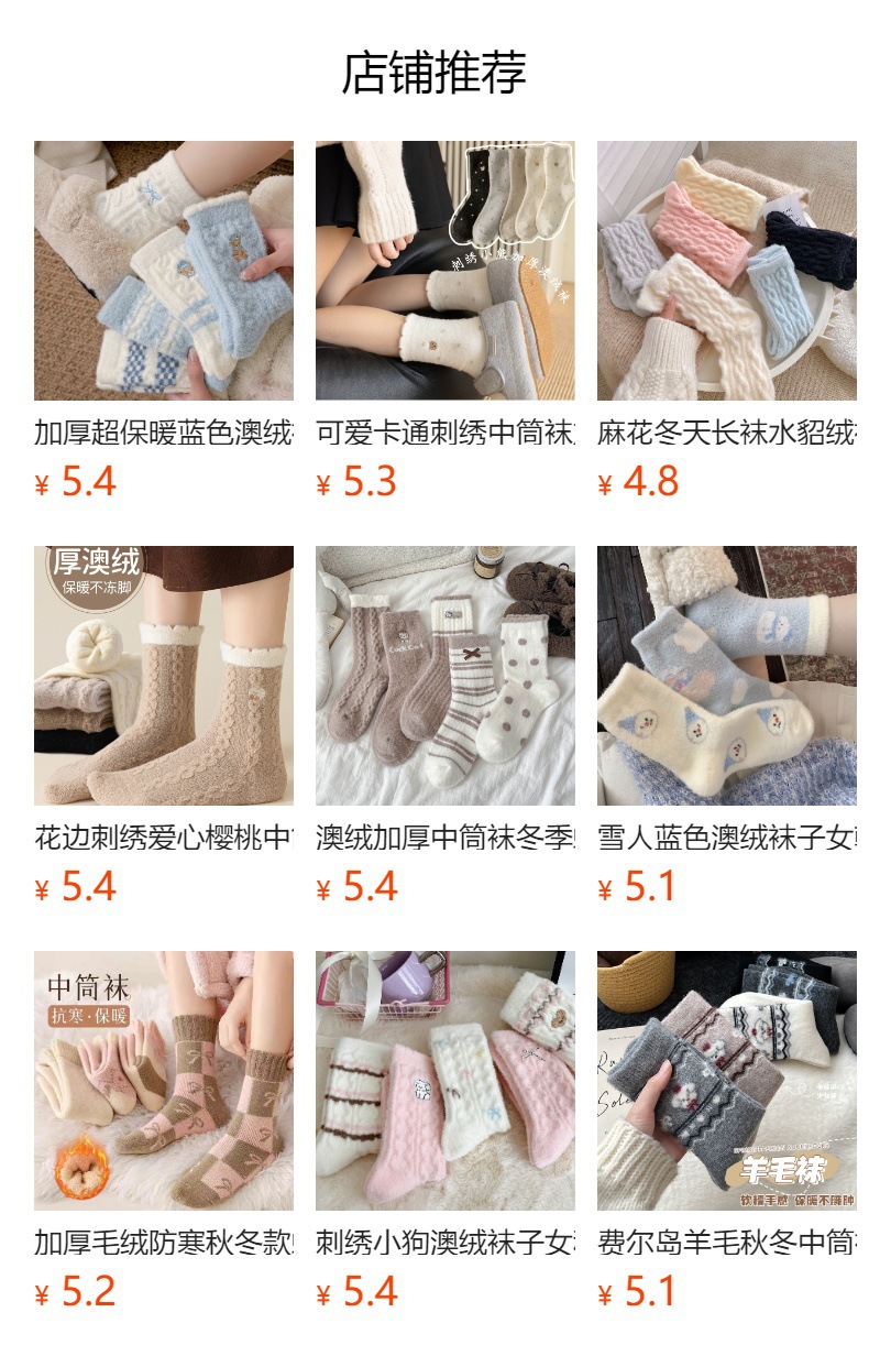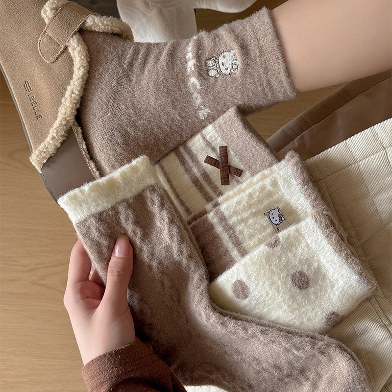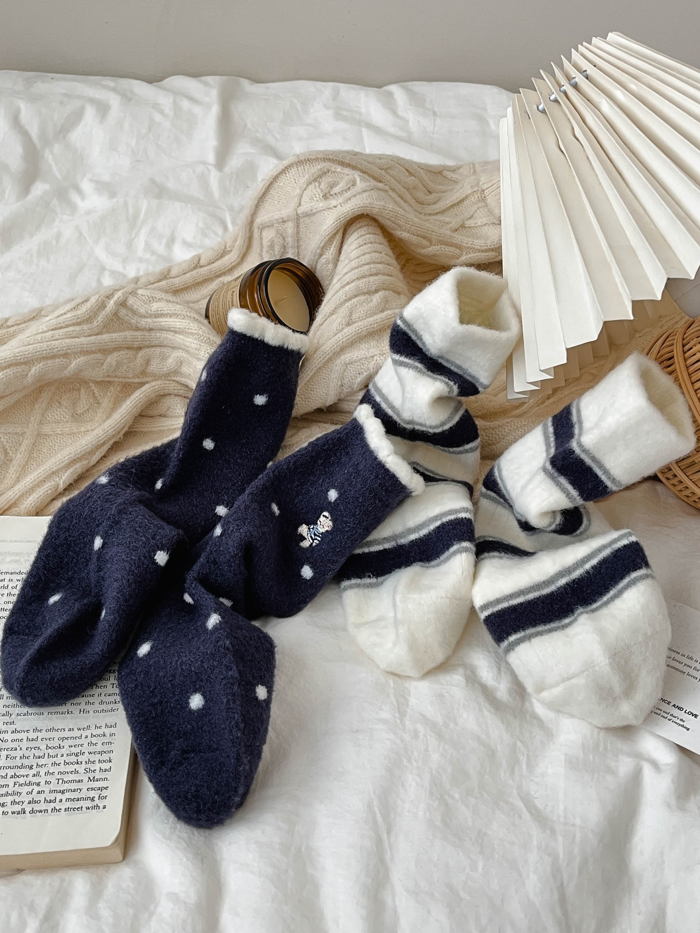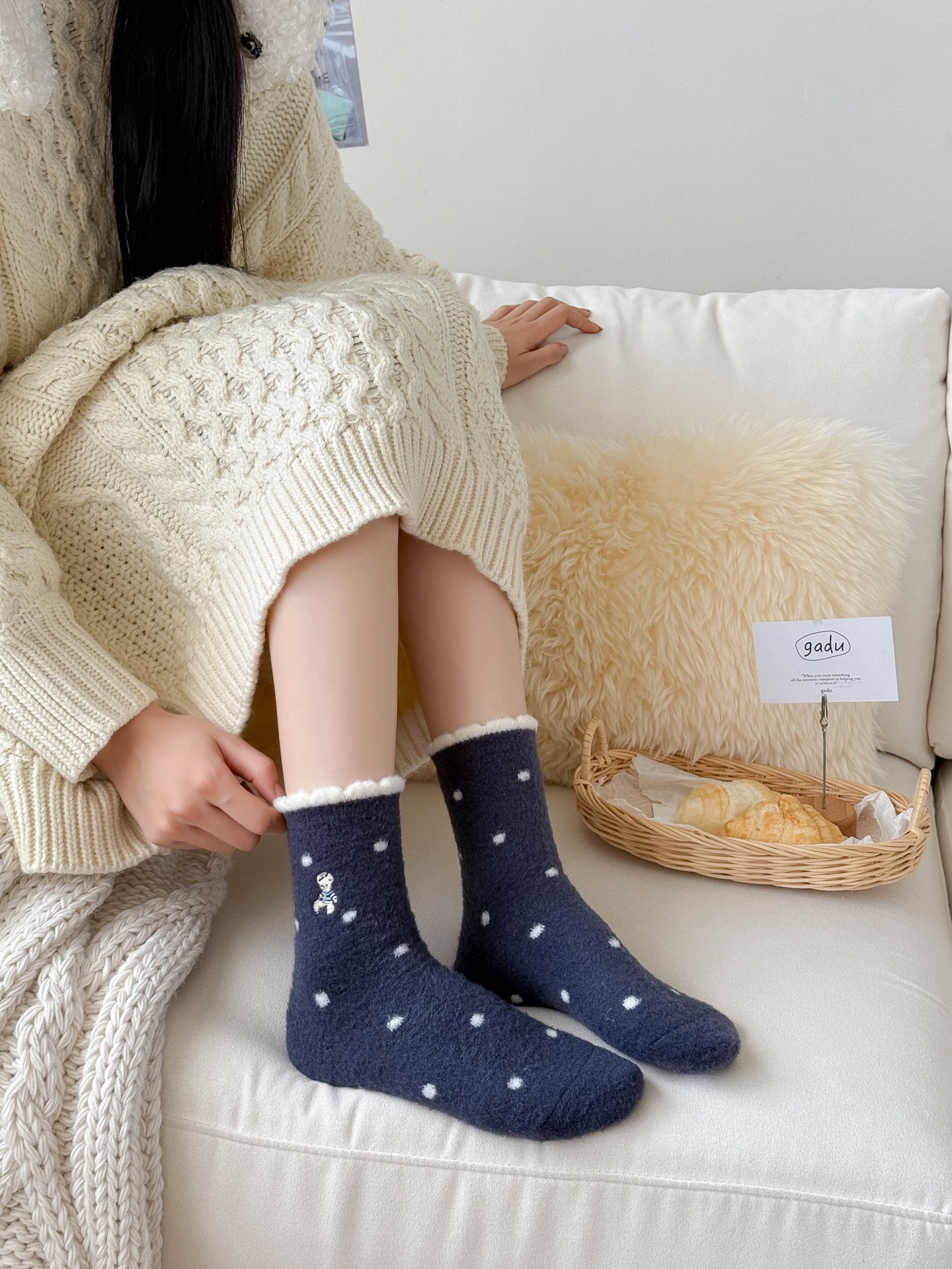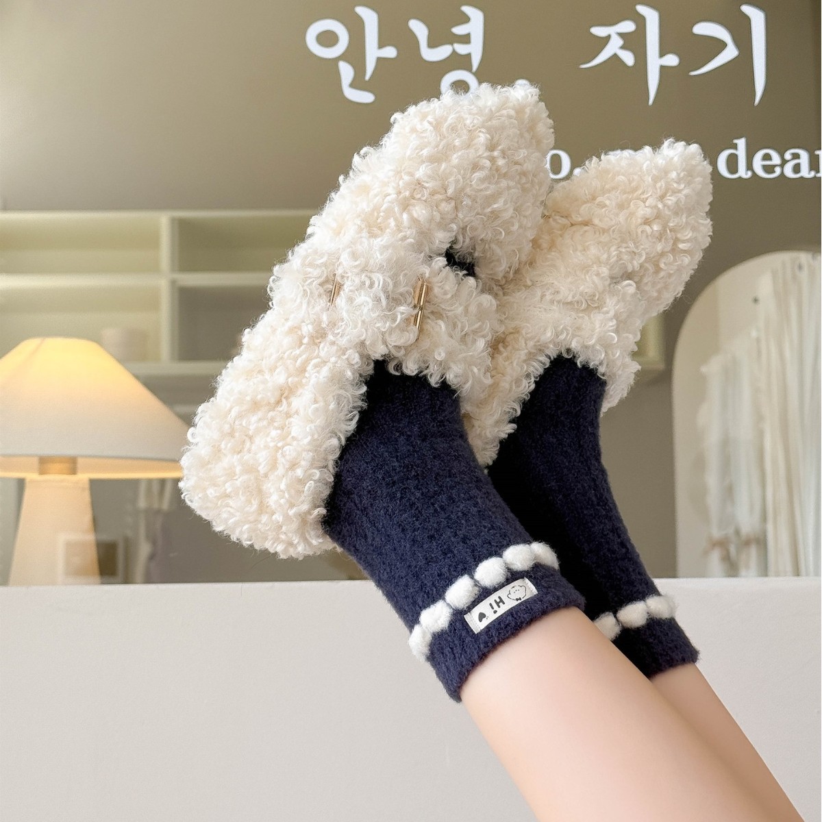 澳绒秋冬袜子女日系可爱加绒加厚保暖袜美拉德可爱麻花波点地板袜