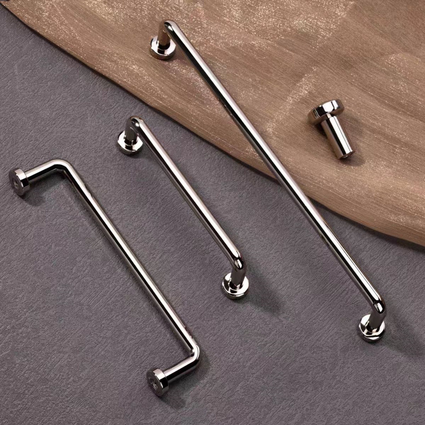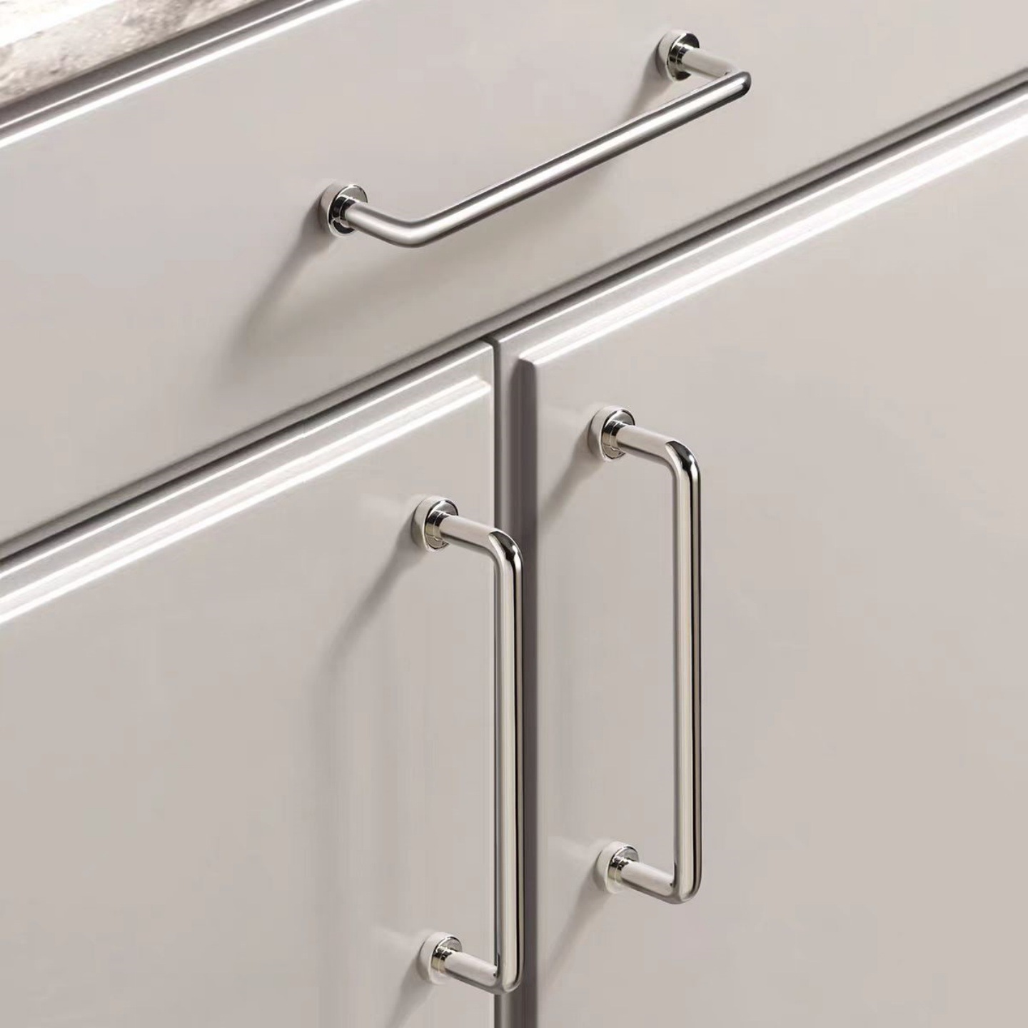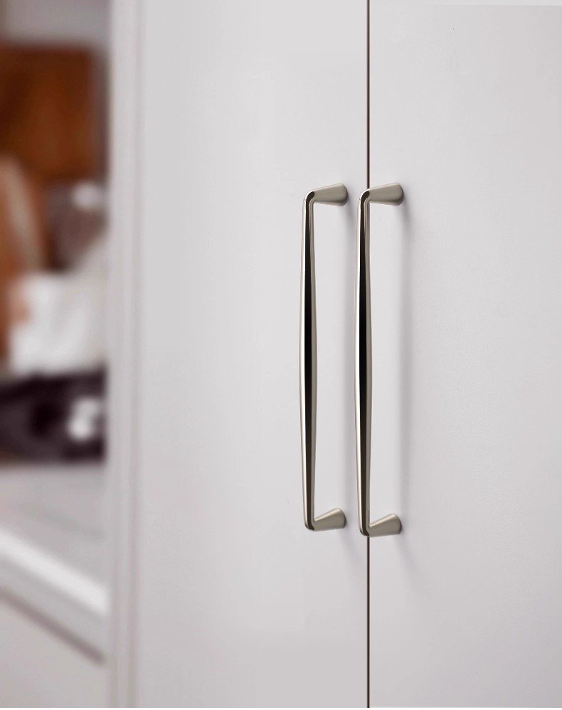 イタリアフレンチシンプルスタイルクロームブライトシルバーハンドルキャビネットドアワードローブキャビネット引き出しミニマリストキャビネット単穴小さなハンドル