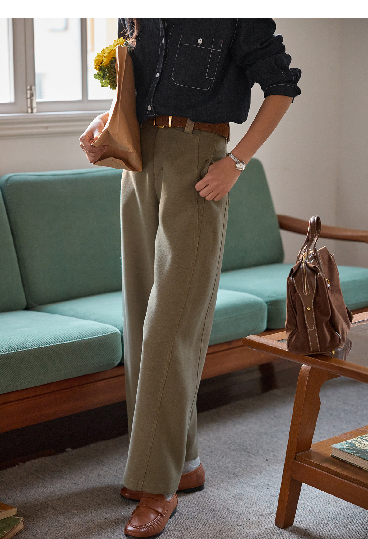 solighter法式莱赛尔羊毛弯刀裤休闲裤高腰长裤