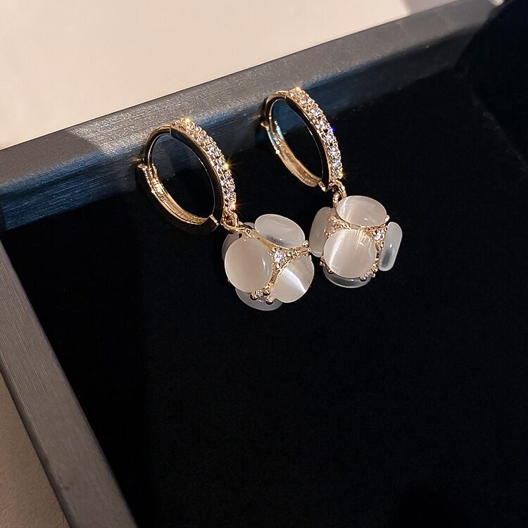 高級感猫眼石イヤリング女2024年新潮軽贅沢小衆デザイン耳輪ネット赤耳飾り