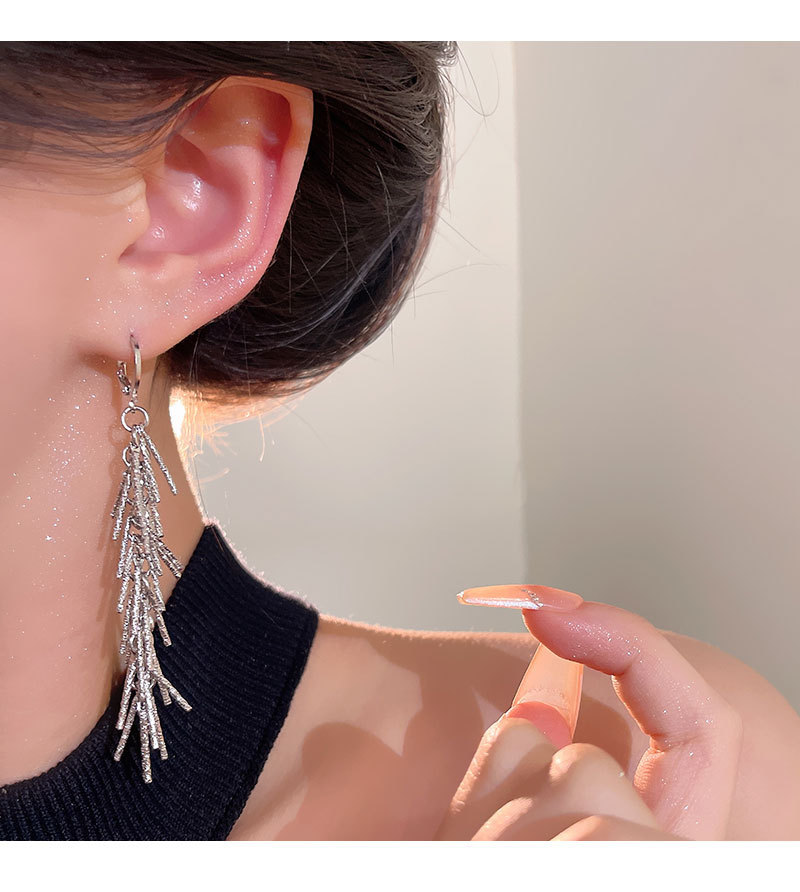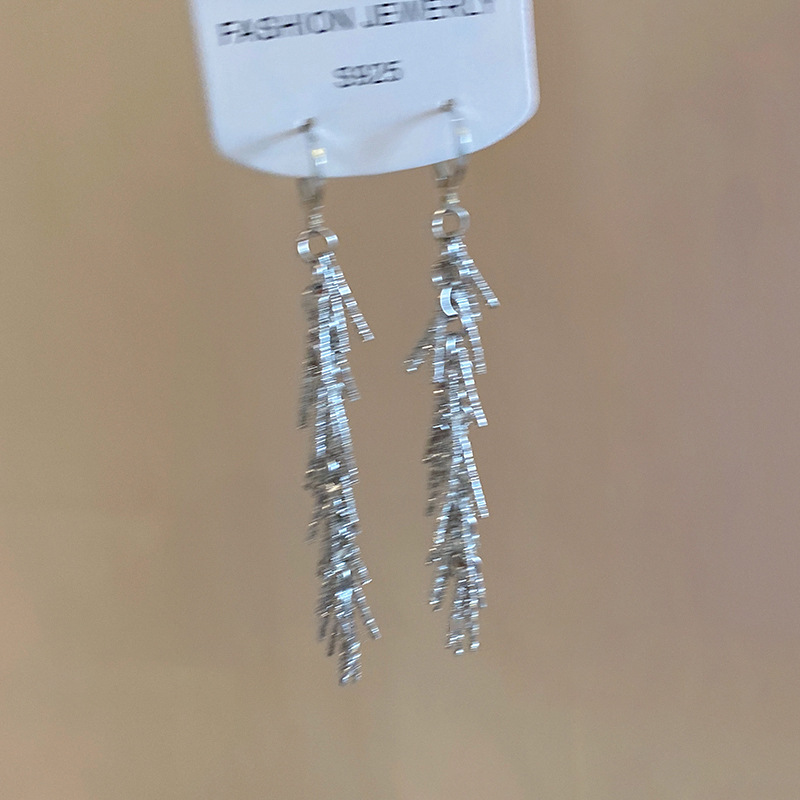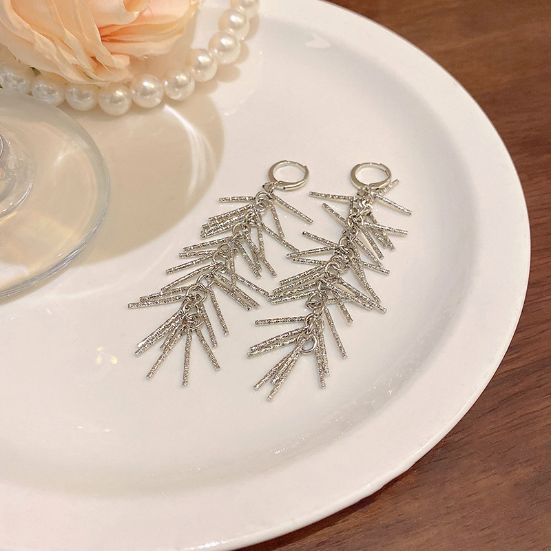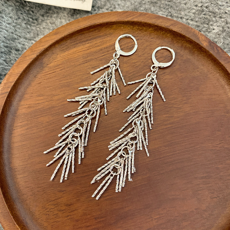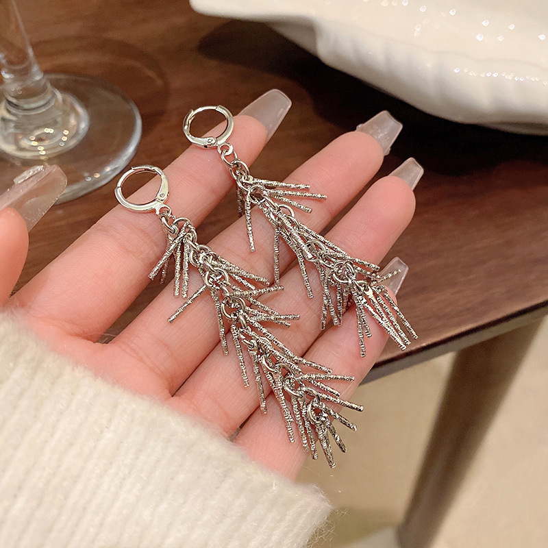 银色条条流苏长款耳扣女夸张个性冷淡风耳环气质轻奢潮流新款耳坠