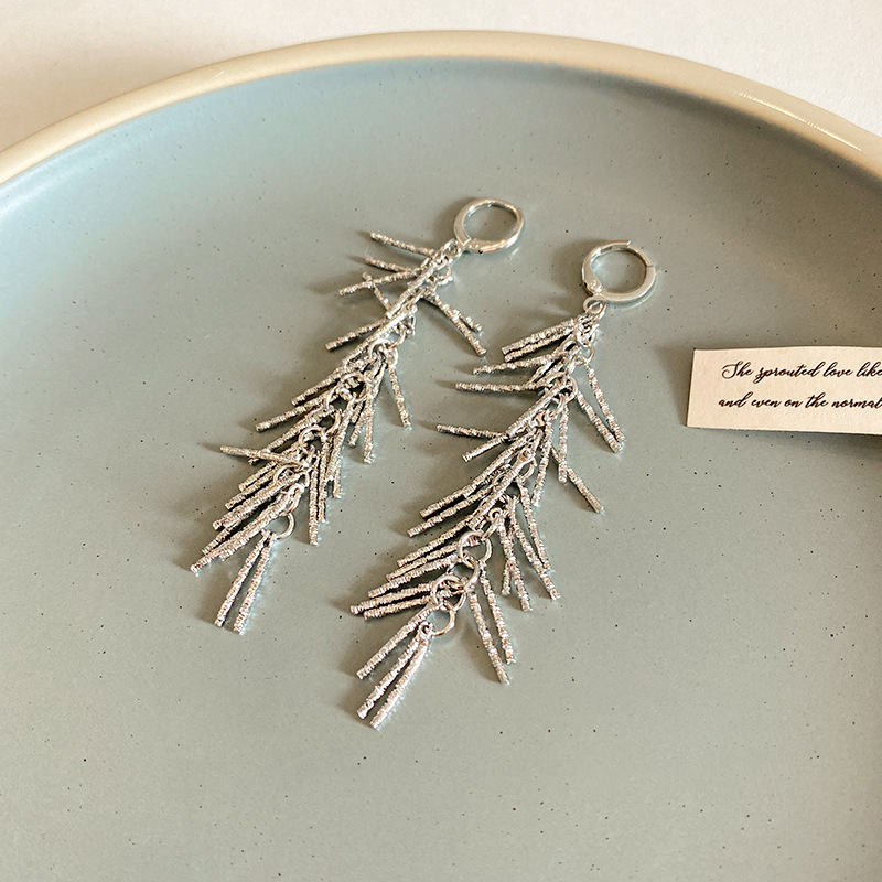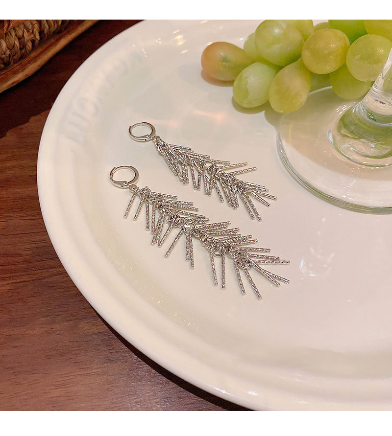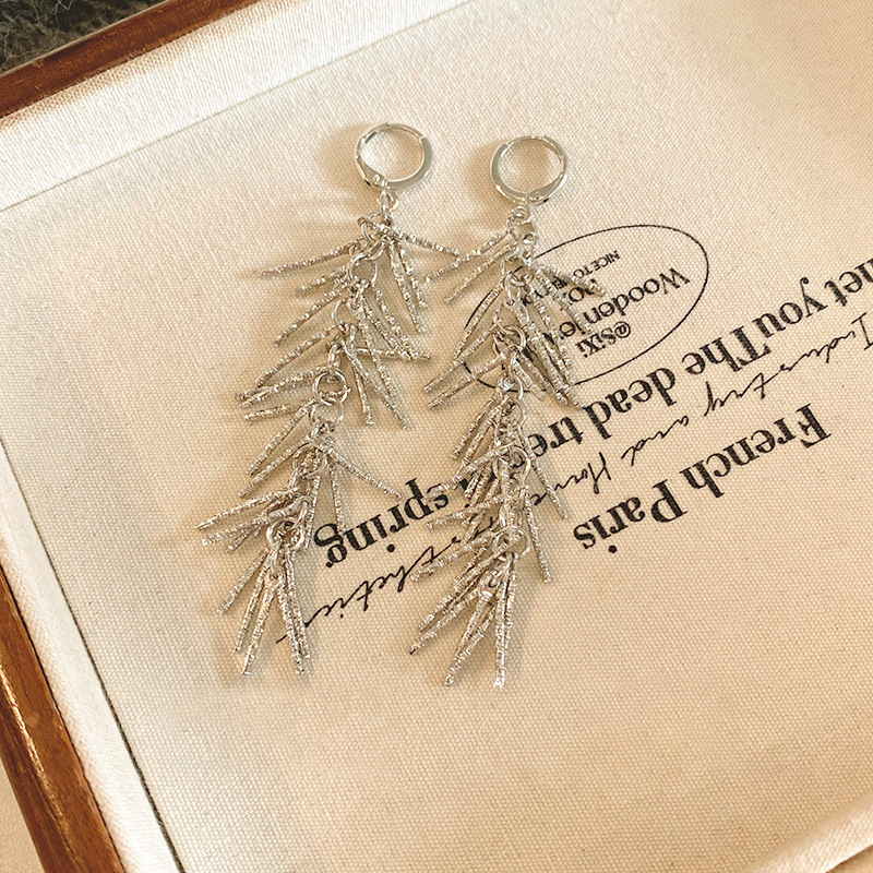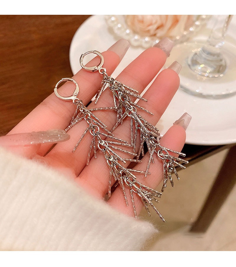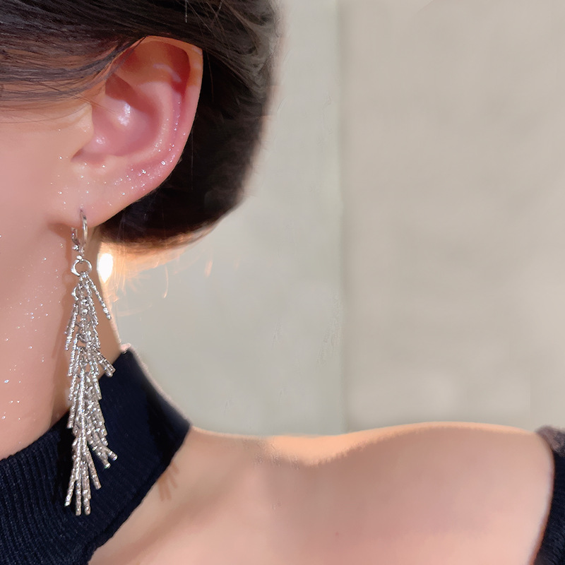 银色条条流苏长款耳扣女夸张个性冷淡风耳环气质轻奢潮流新款耳坠