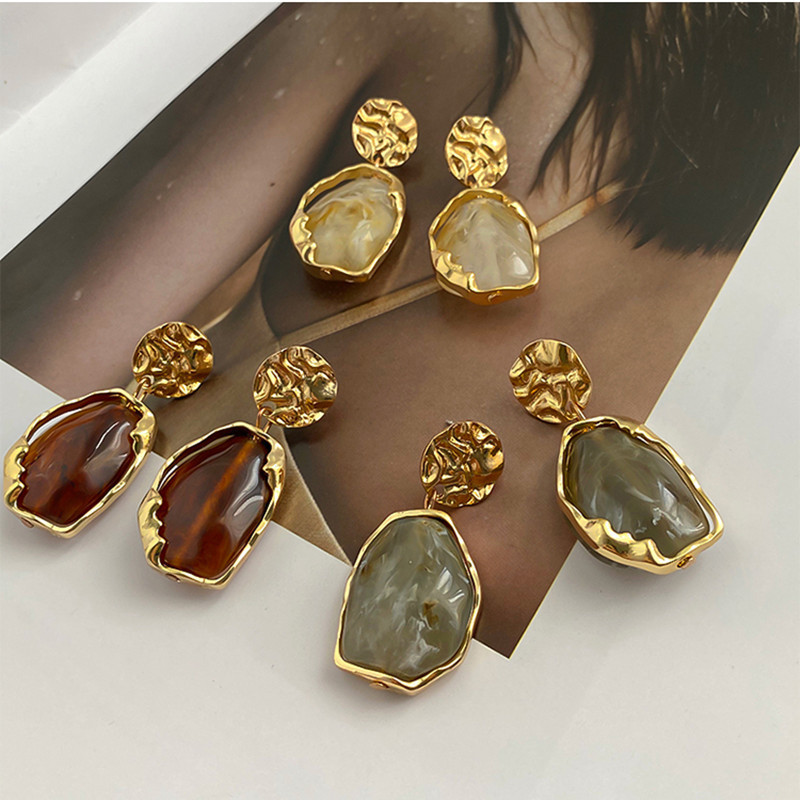 美拉德风花朵树脂吊坠耳环女时尚百搭气质耳钉小众设计感耳饰品