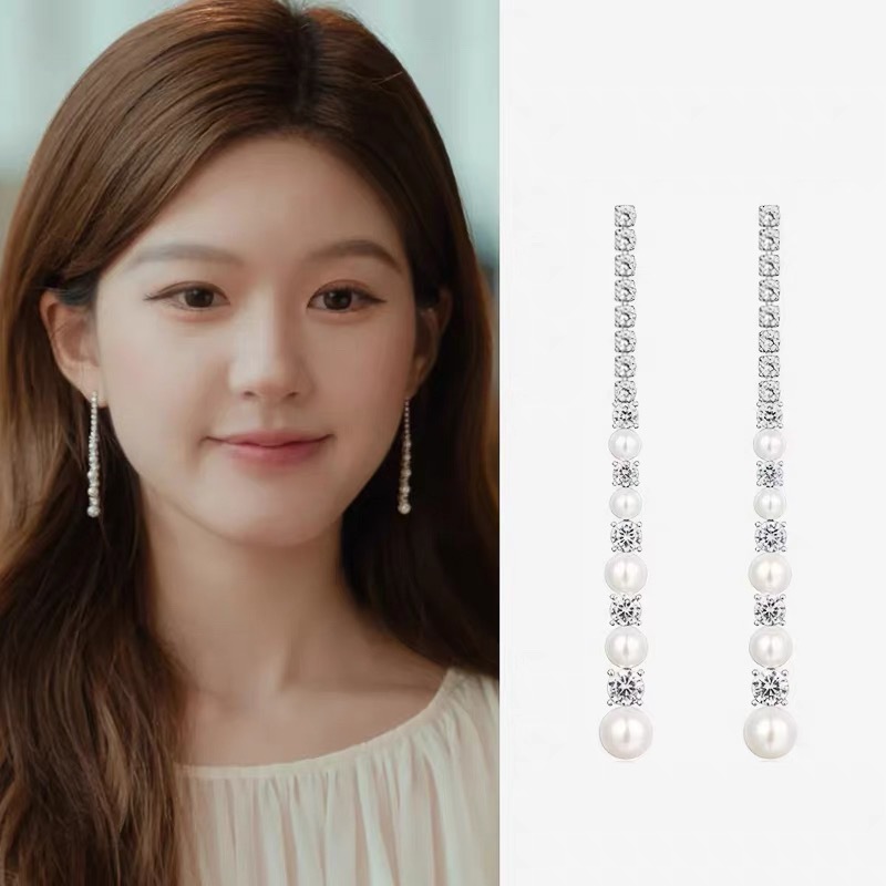 许妍赵露思同款长款几何珍珠流苏耳钉千金名媛气质高级感耳饰耳环