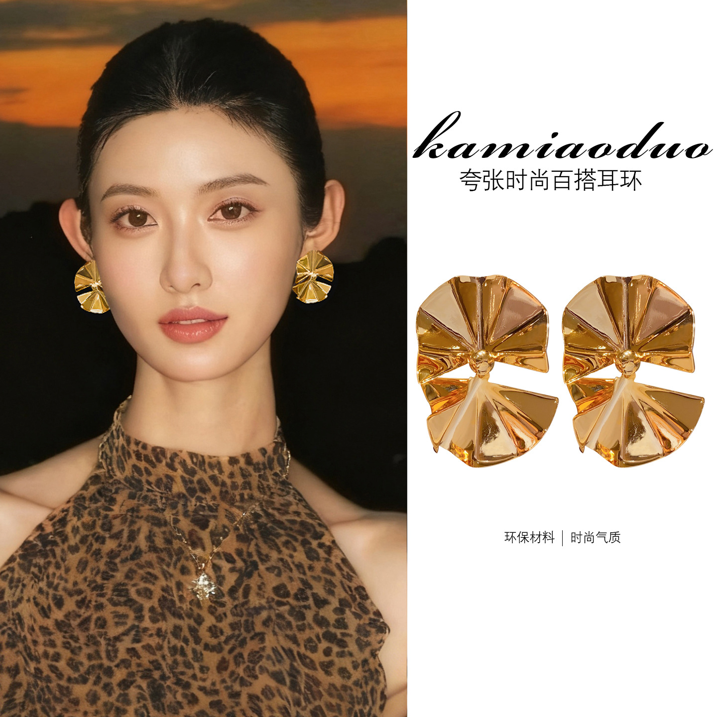 跨境欧美金属几何不规则耳环女小众设计感气质夸张耳钉轻奢耳饰品