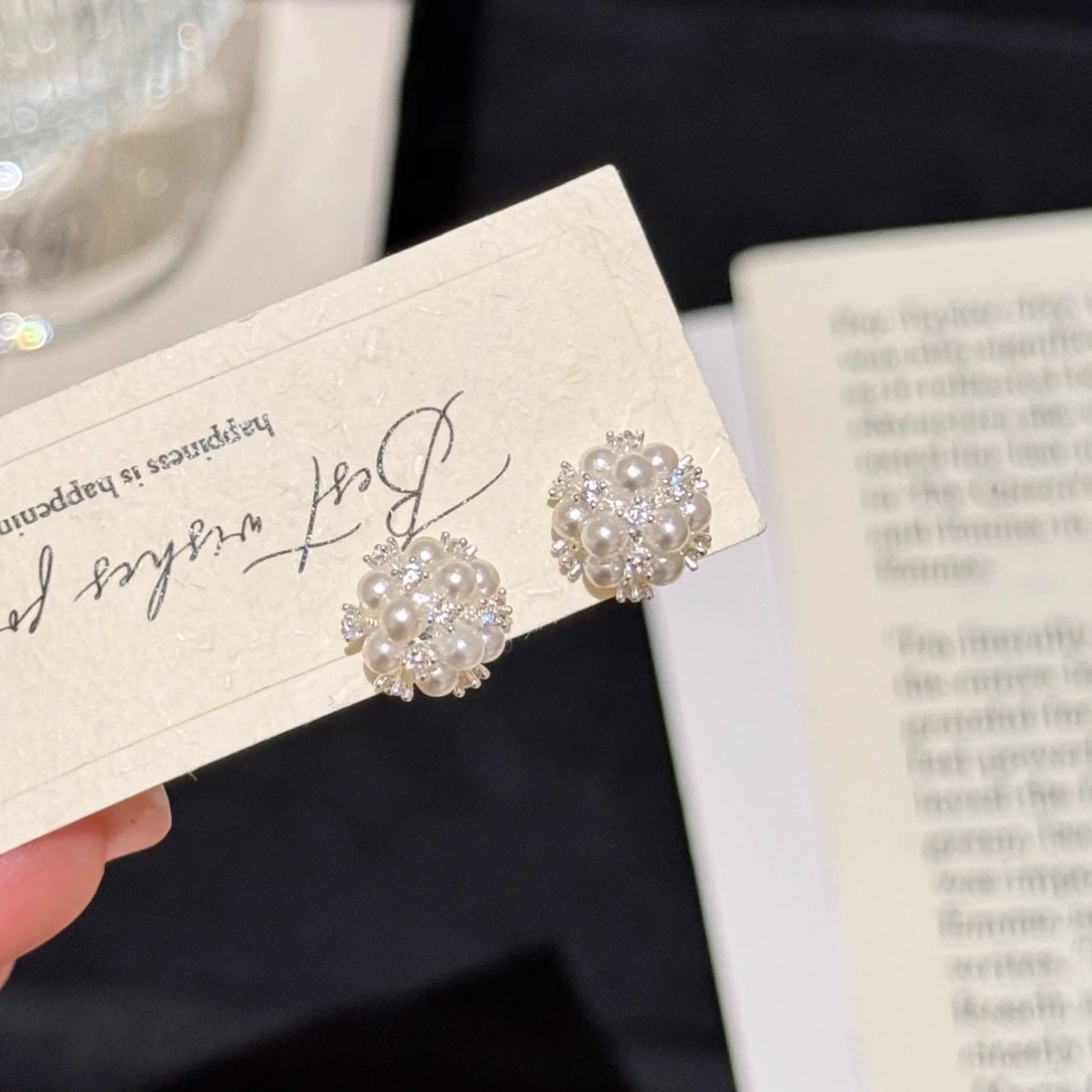 S925銀針小衆デザイン刺繍真珠ピアス軽贅沢高級感百合甘イヤリング