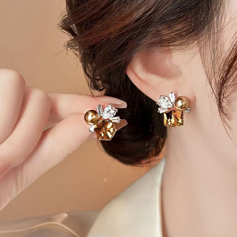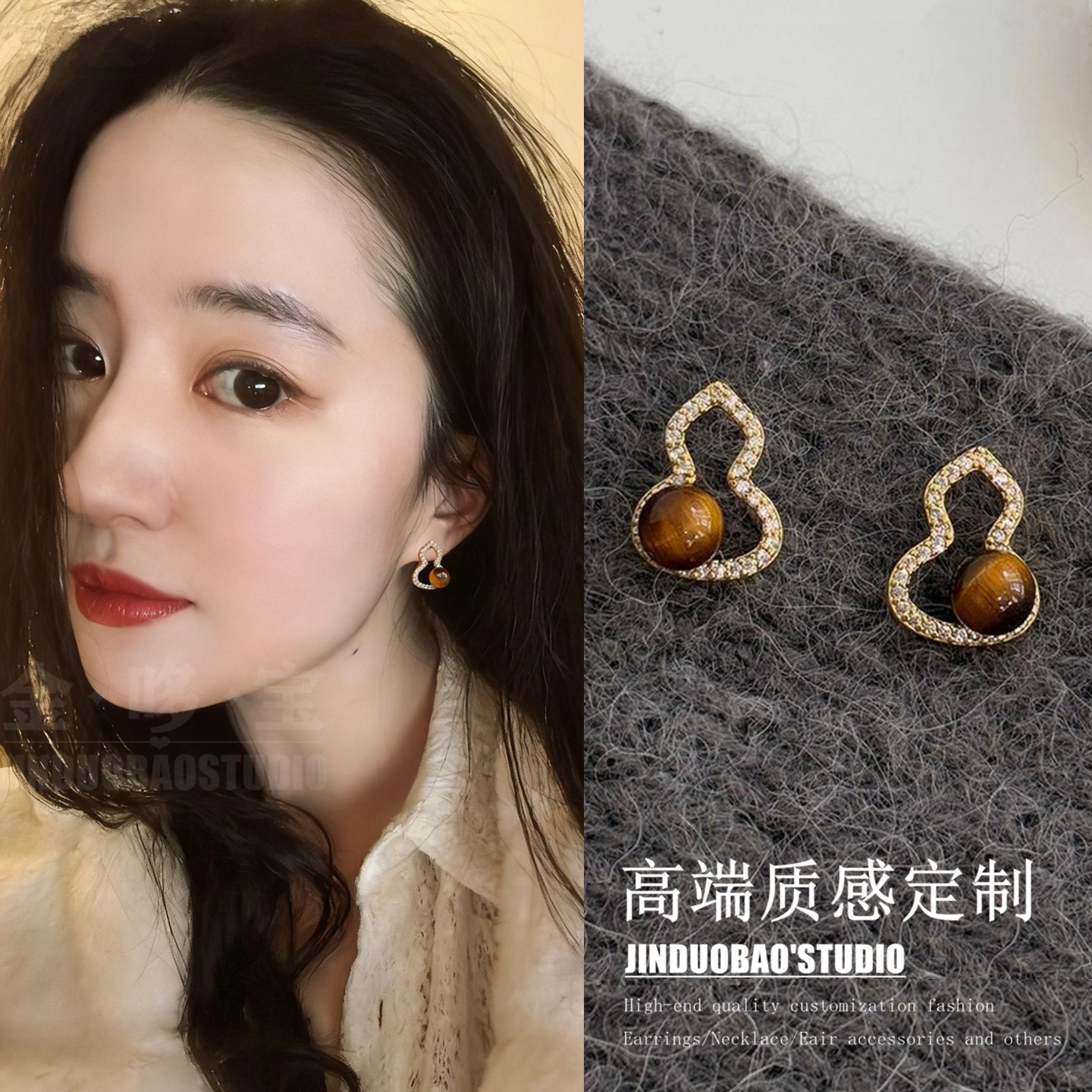 刘亦菲同款虎眼石葫芦锆石耳环小众设计感轻奢耳钉秋冬高级感耳饰