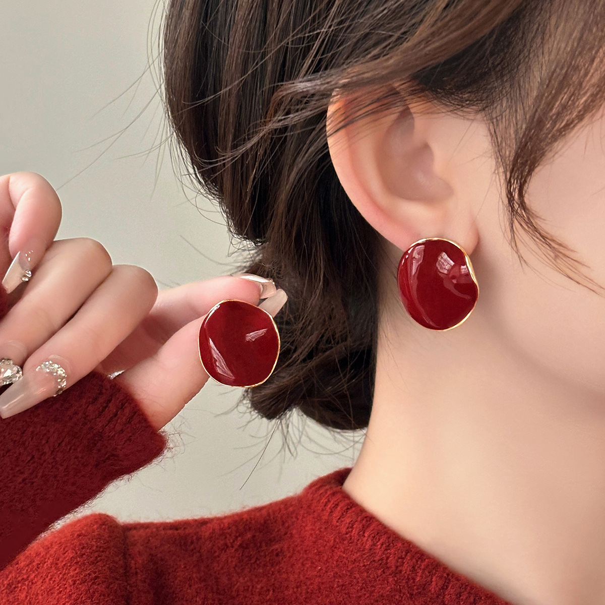 不规则红色滴釉圆形几何耳钉女秋冬轻奢高级感复古气质耳饰耳环女